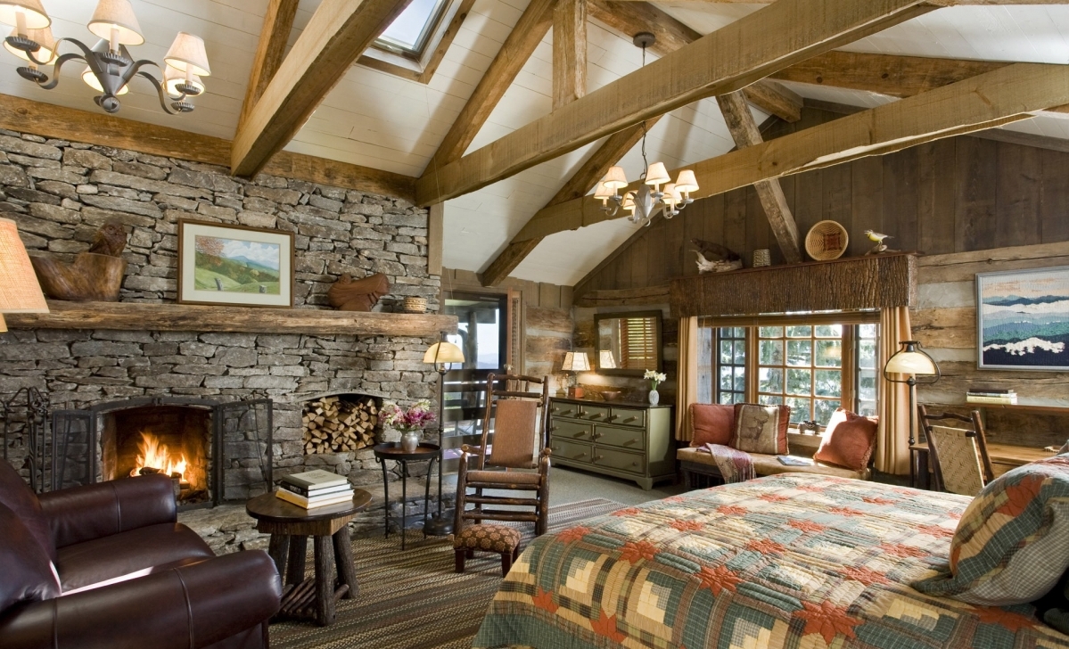 Estilo rústico. Quarto com um interior simples e confortável, para os amantes do conforto