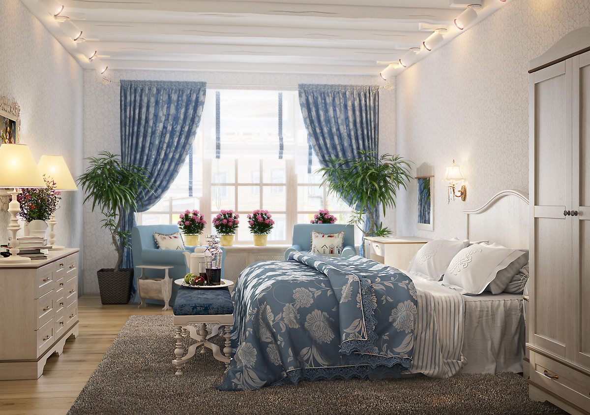 Pessoas leves e alegres escolhem o design de seus quartos no estilo campestre. Praticamente todo país tem seu próprio estilo rústico. Os franceses chamam de Provence. Nos EUA - País.