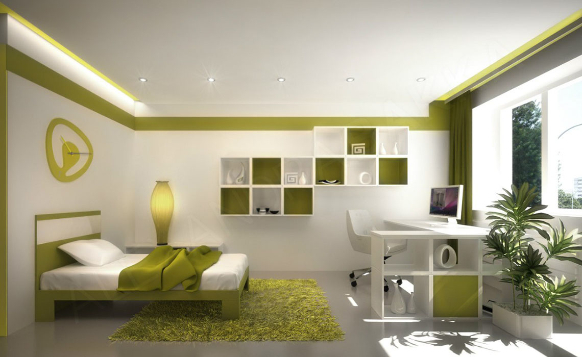 - A sala está equipada com a mais recente tecnologia e mobiliário ergonómico. Mesas, guarda-roupa e cama são feitos de materiais poliméricos, diferentes tipos de vidro e metal. As portas e os painéis laterais dos itens devem ser brilhantes e brilhantes.Os suportes e vários elementos metálicos são cromados.