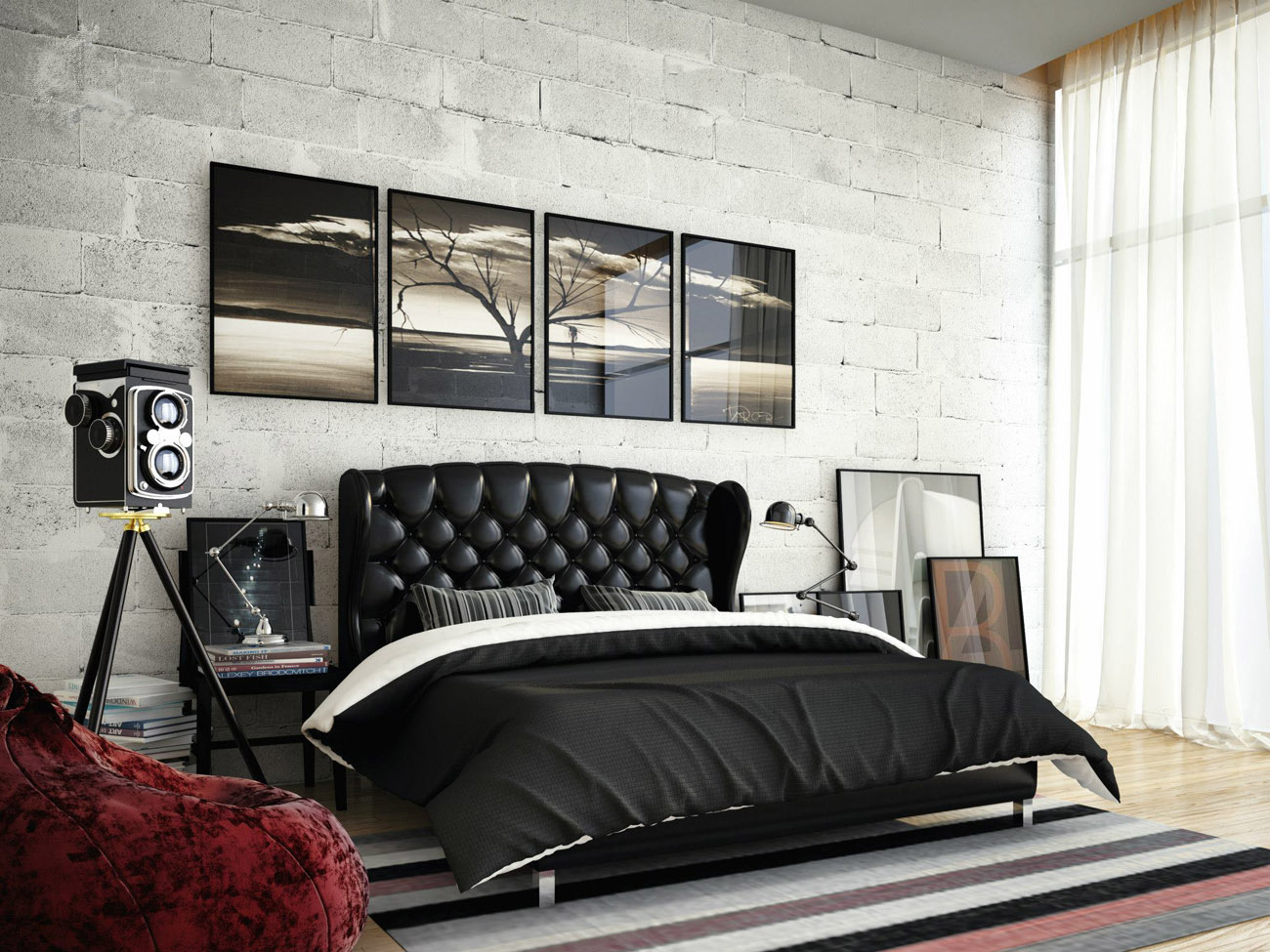 Um estilo não foi encontrado. Para o quarto com um design minimalista conciso, a base é selecionada, e isso pode ser: