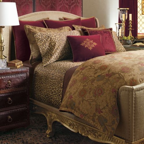 Também será apropriado olhar para a colcha de quarto vitoriana e travesseiros superiores, bem como outros tecidos feitos de tecidos caros de cores ricas (bordô, verde escuro, rosa, etc.). Eles são decorados com bordados com padrões intrincados de fios de ouro.