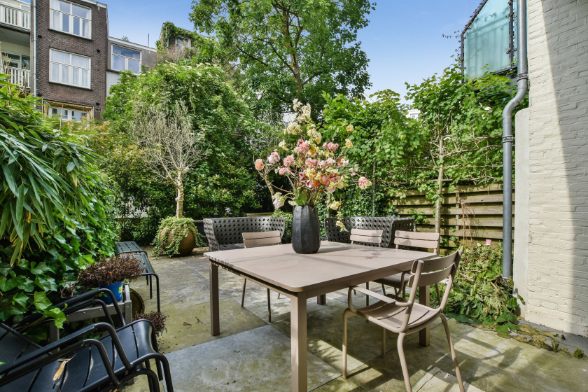 O pátio da casa é relativamente pequeno, porque o conteúdo deve ser escolhido sabiamente. Pode ser: