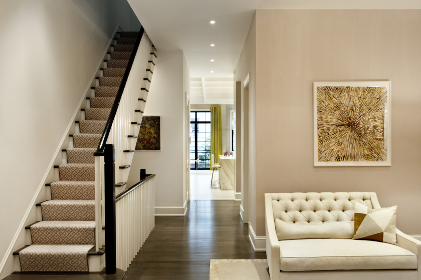 - Clássicos ingleses. O estilo que veio da boa e velha Inglaterra para um sobrado pode ser chamado nativo. Cores - cobre, madeira escura, tons naturais nobres, de mel delicado a oliva. Há painéis de madeira e papel de parede nas paredes, parquet no chão e gesso no teto. O mobiliário é de madeira, elegante, sempre sofá de pelúcia do tipo mais importante. Um monte de têxteis - cortinas, tapetes, guardanapos. Certifique-se de retratos dos proprietários e, em geral, as pinturas nas paredes.