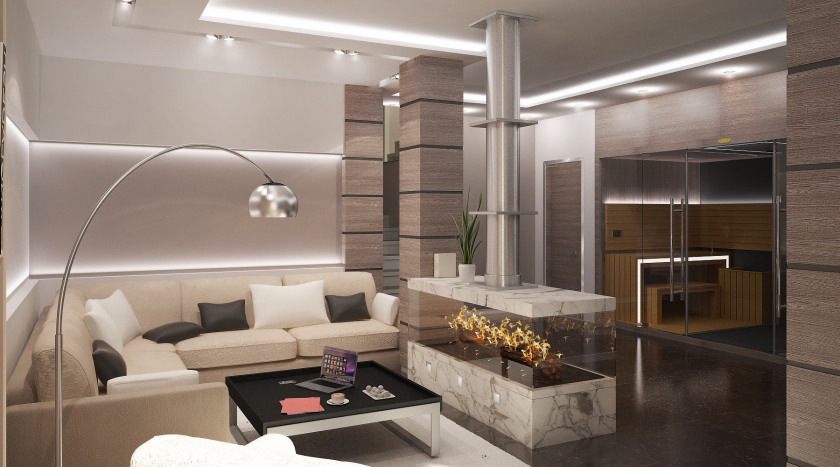 - Estilo escandinavo. Vindo do norte, este estilo adora o espaço e as cores claras. Faça isso em branco, tons de azul claro, bege. As paredes são cobertas com tinta ou gesso, a madeira é colocada no chão e o teto é estucado. As janelas são feitas o maior possível, a mobília é de madeira, profundamente. Deve haver alguns acessórios. carpete no chão, cortinas feitas de tecidos naturais. Ok, se você tem lareira.