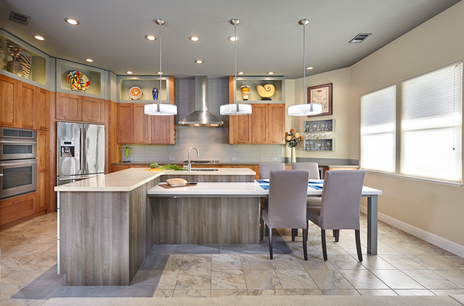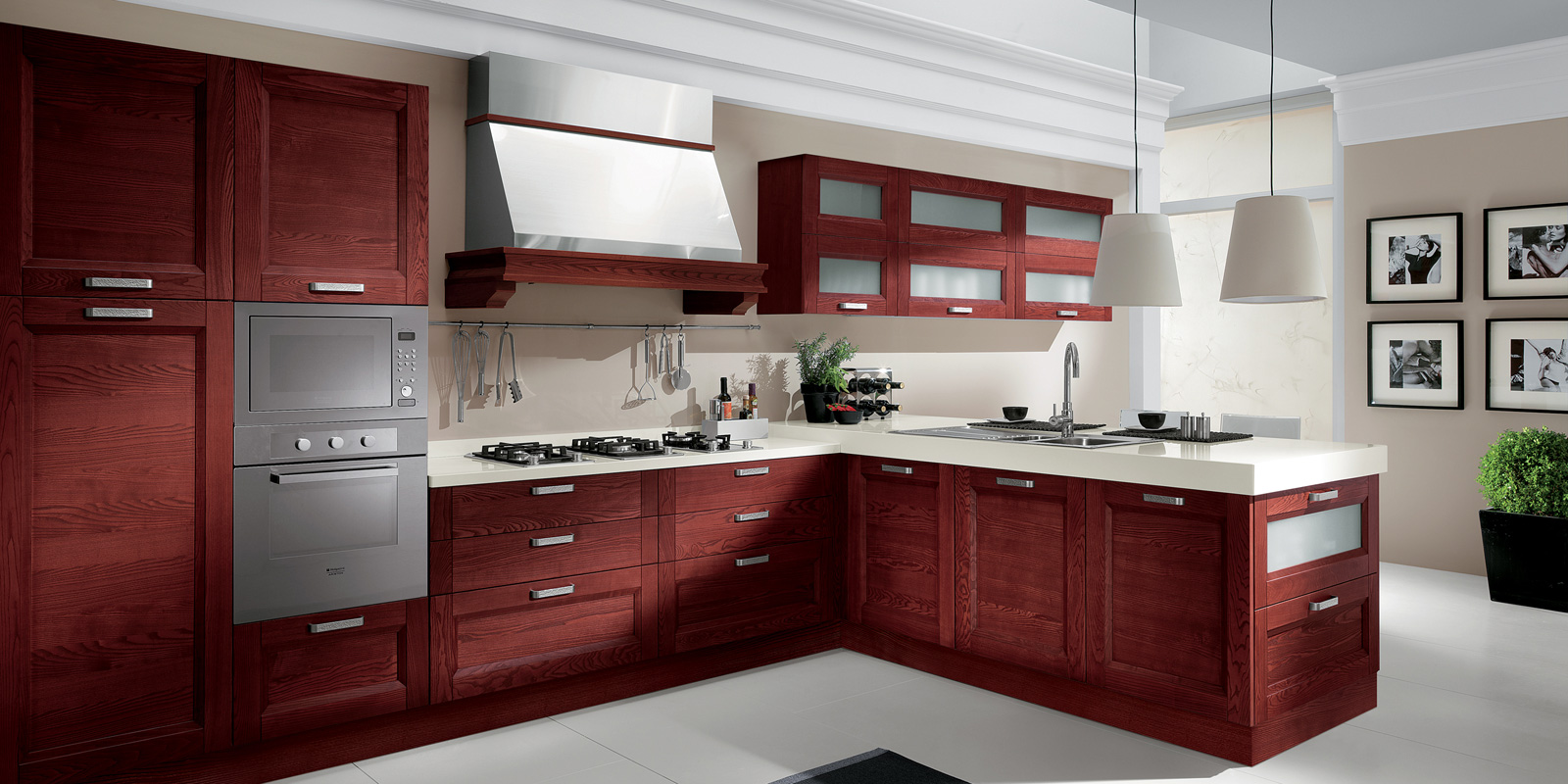 - Bem em harmonia com a cozinha "ilhas" para o fogão ou pia.