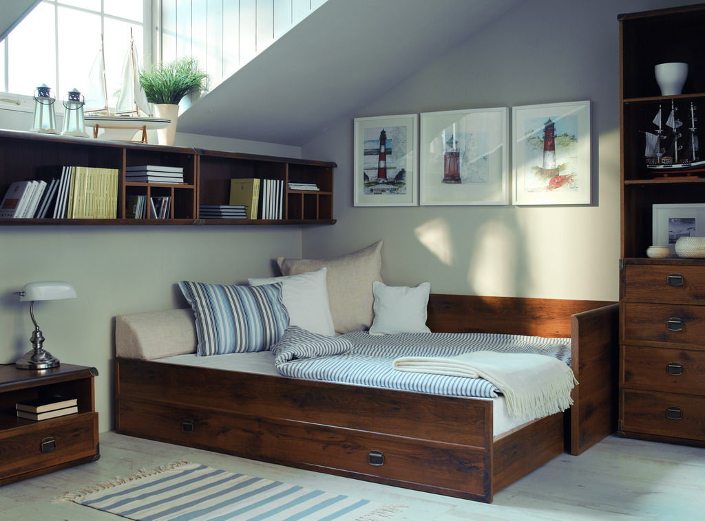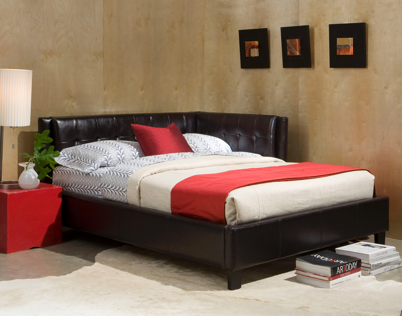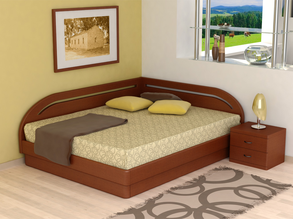 Camas de esquina têm sido usadas com bastante frequência antes, e hoje elas estão lentamente se tornando populares novamente. Eles são usados principalmente porque economizam espaço e usam o ângulo, que geralmente permanece estéril e coleta poeira.