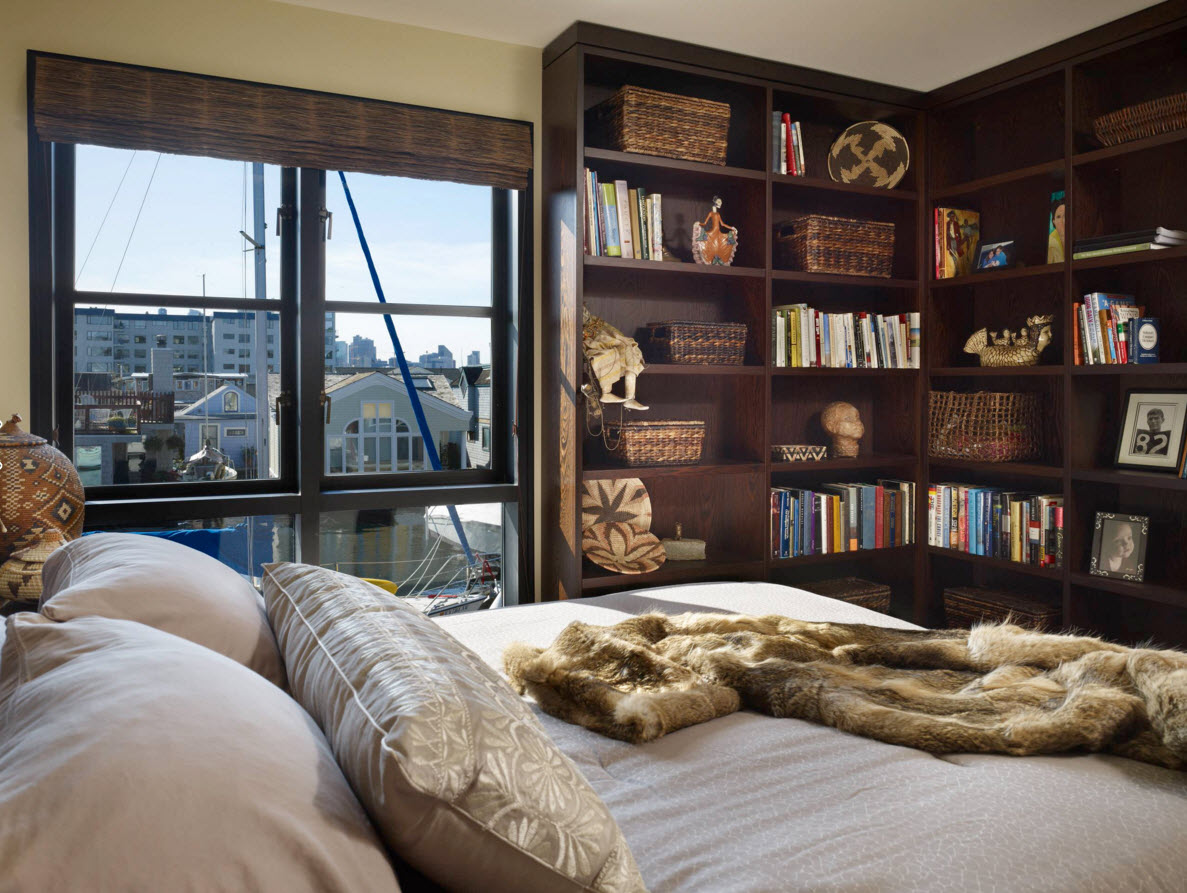 Se o canto de leitura pareceu uma boa idéia para você, então você gostaria da idéia de uma estante de canto não menos. Obviamente, a prateleira também complementa a estética com uma variedade de salas que podem ser trocadas a cada temporada para combinar com a direção do design de interiores.