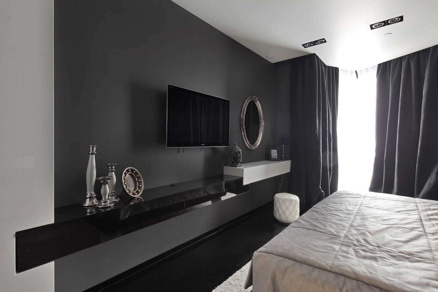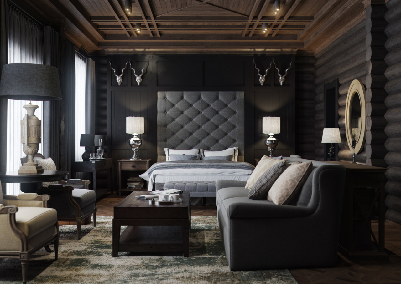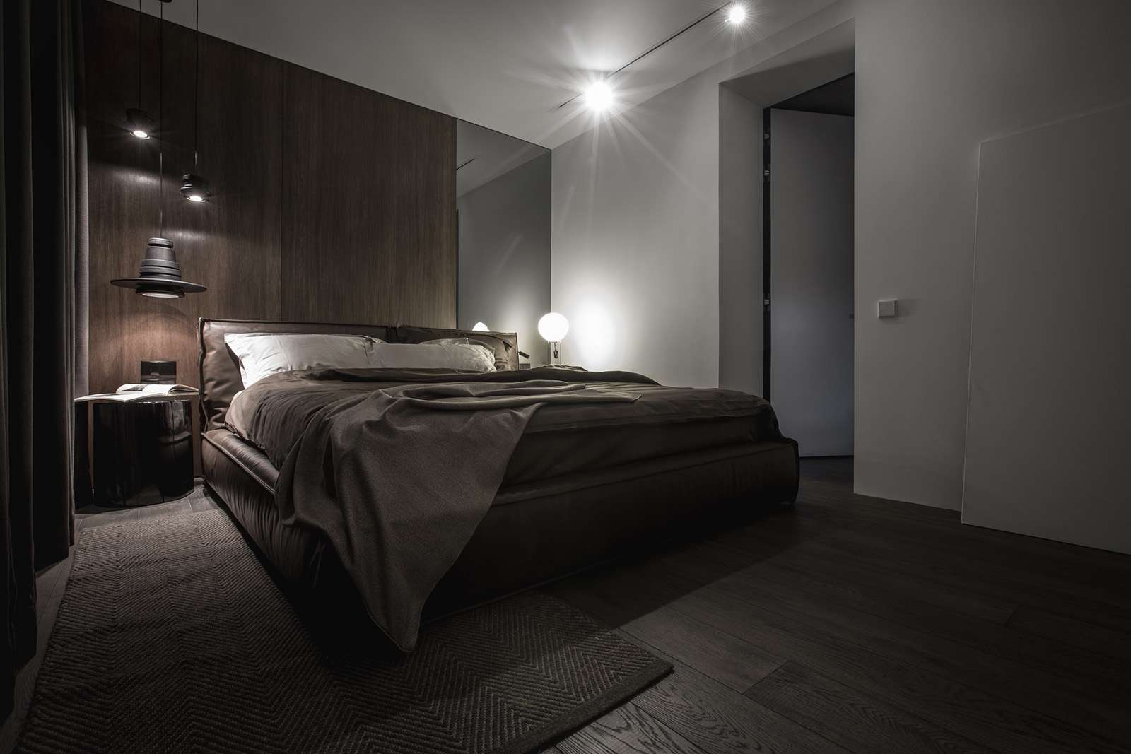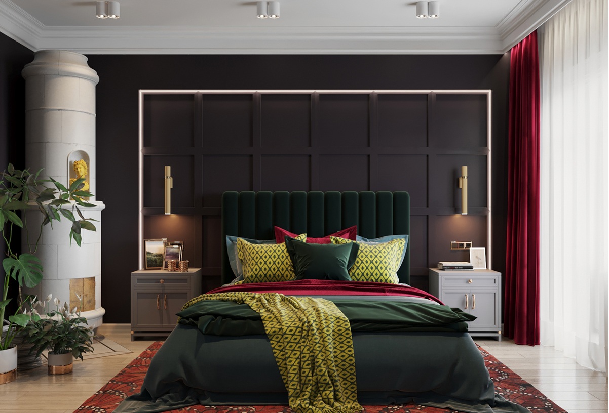 A principal tarefa da sala é criar um ambiente agradável para um bom sono e descanso. Portanto, muitos nem sequer pensam em como organizá-lo em uma paleta escura.