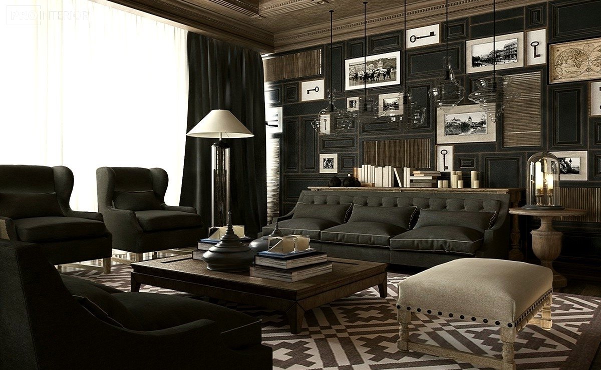 Devido a isso, a sala parece espaçosa e harmoniosa. Toda a atmosfera está imbuída do espírito do luxo e da aristocracia. Os interiores escuros são encontrados nas casas de pessoas criativas. Eles adoram decorar a casa com itens antigos ou raras obras de arte.