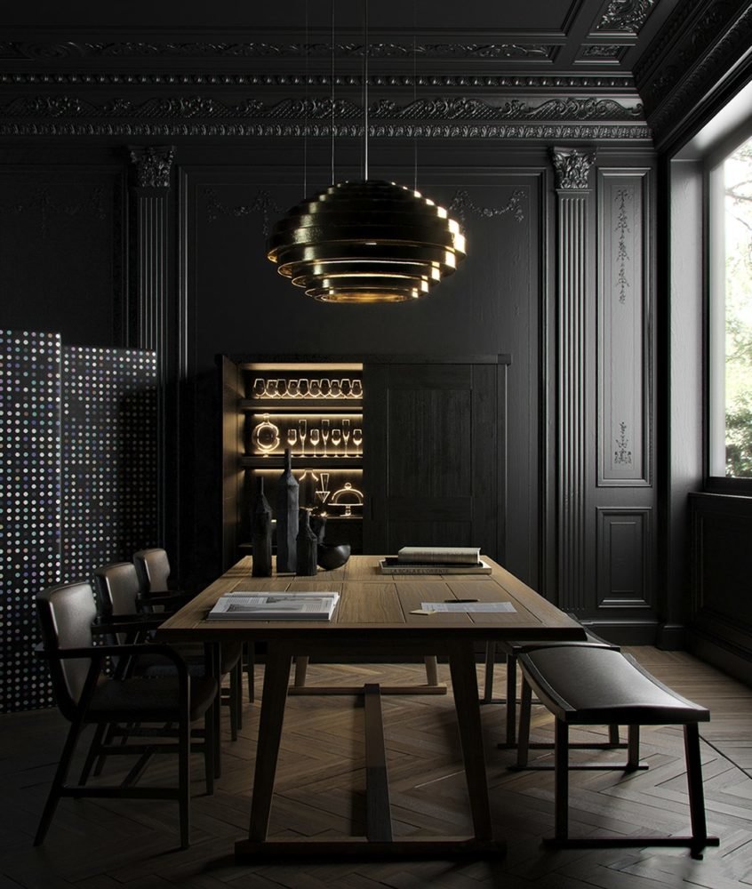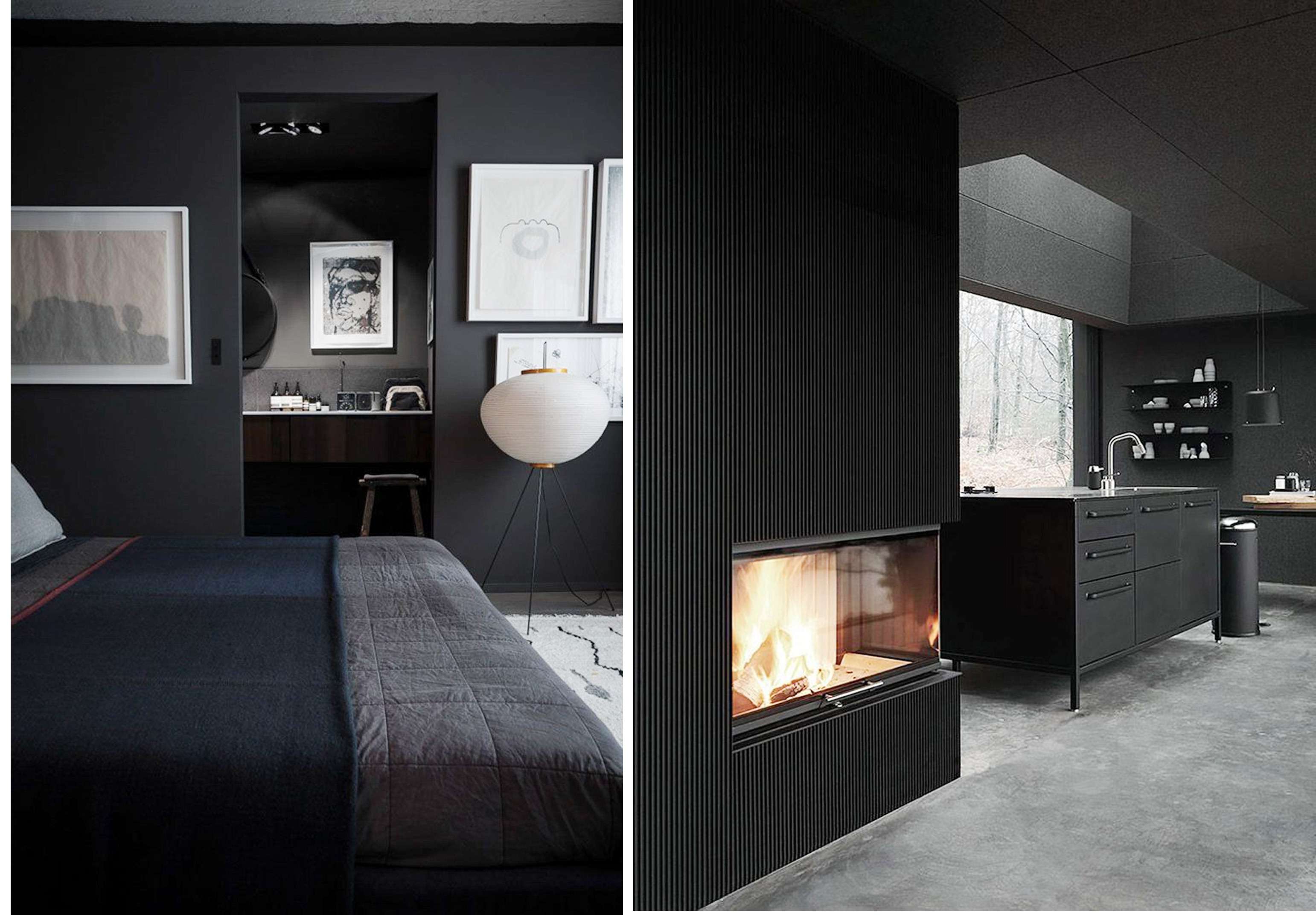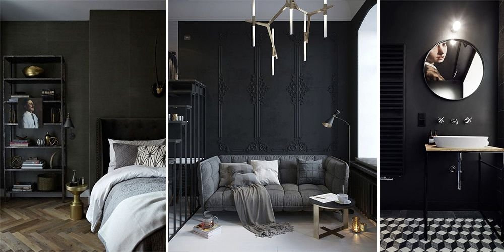 Iluminação bem escolhida ou combinações de preto com outros tons ajudará a resolver este problema. Entre eles estão: