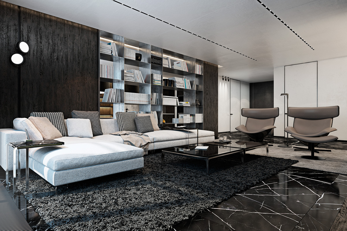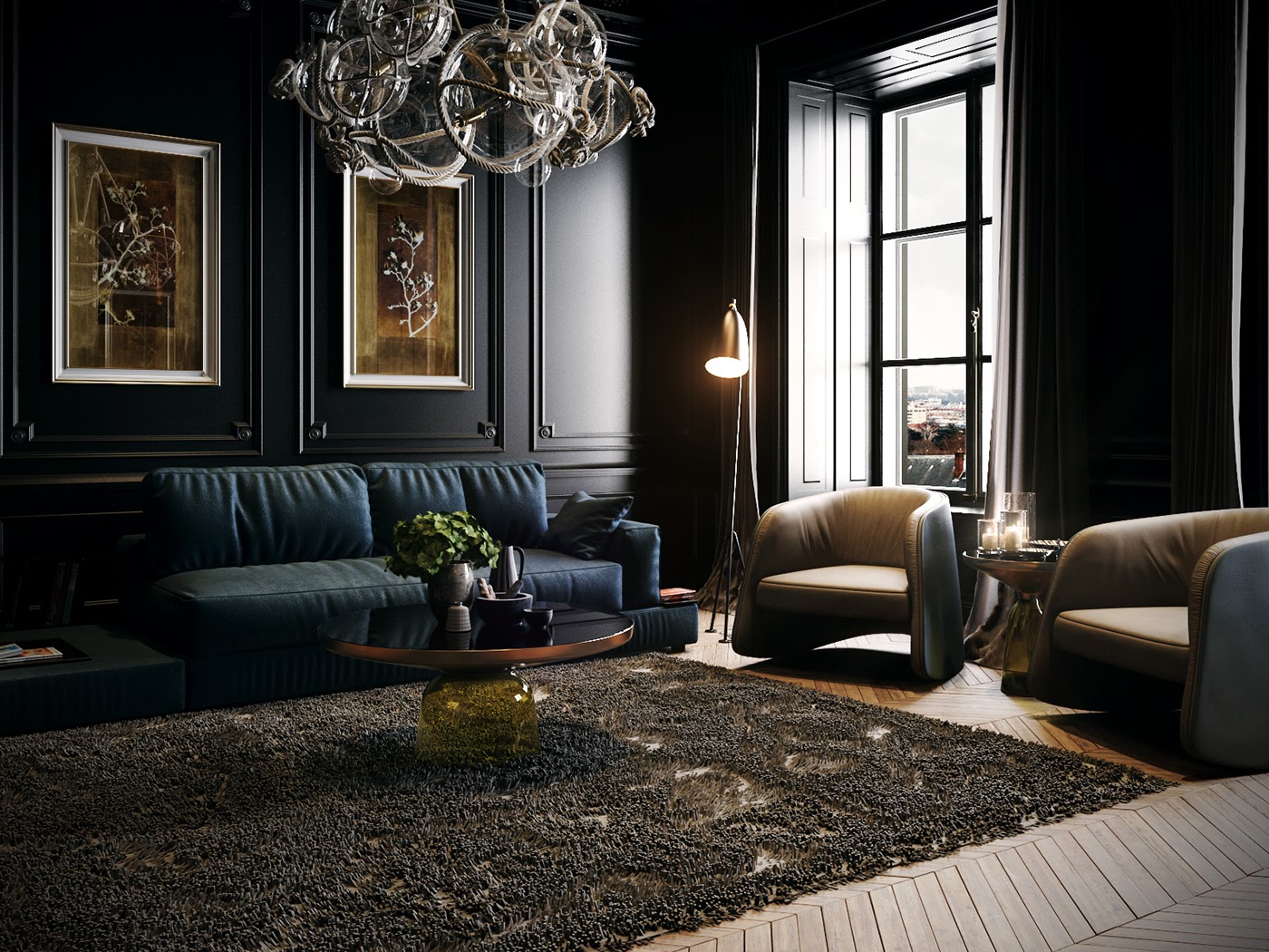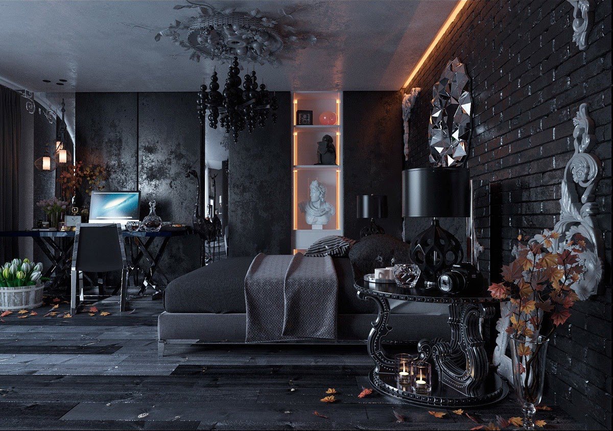 Iluminação bem escolhida ou combinações de preto com outros tons ajudará a resolver este problema. Entre eles estão: