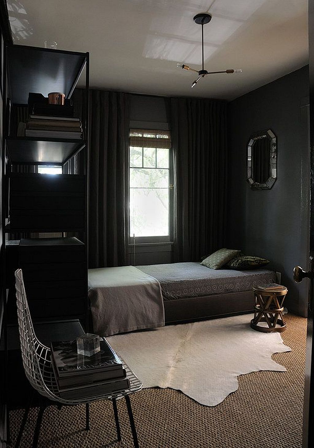 Mobília do quarto não tem necessariamente que escolher cores pretas. É apropriado usar máscaras: