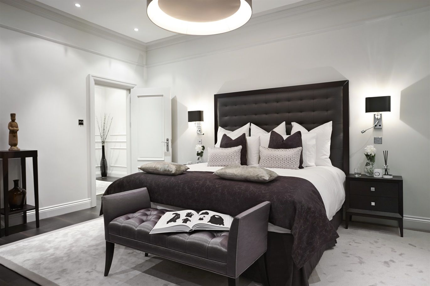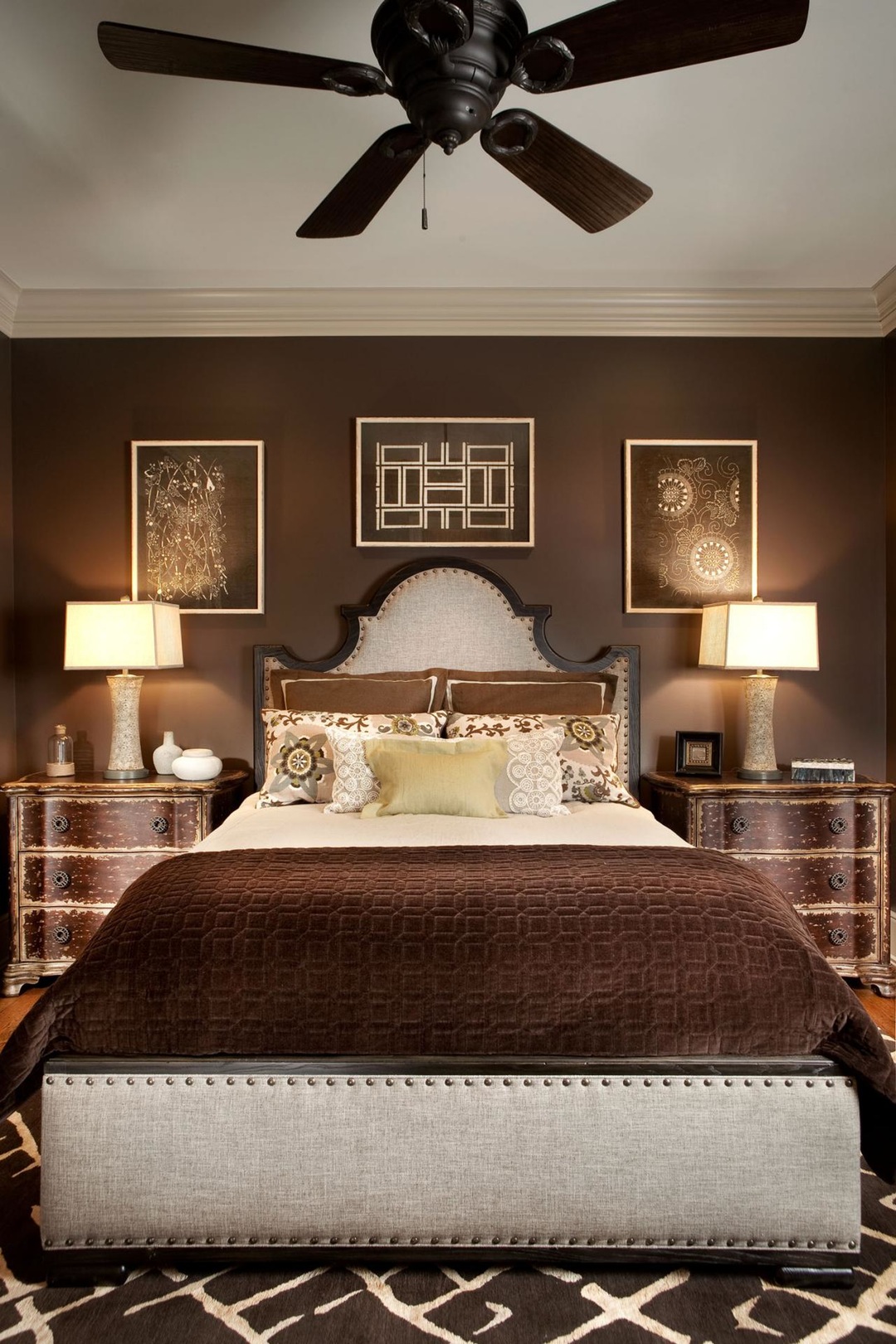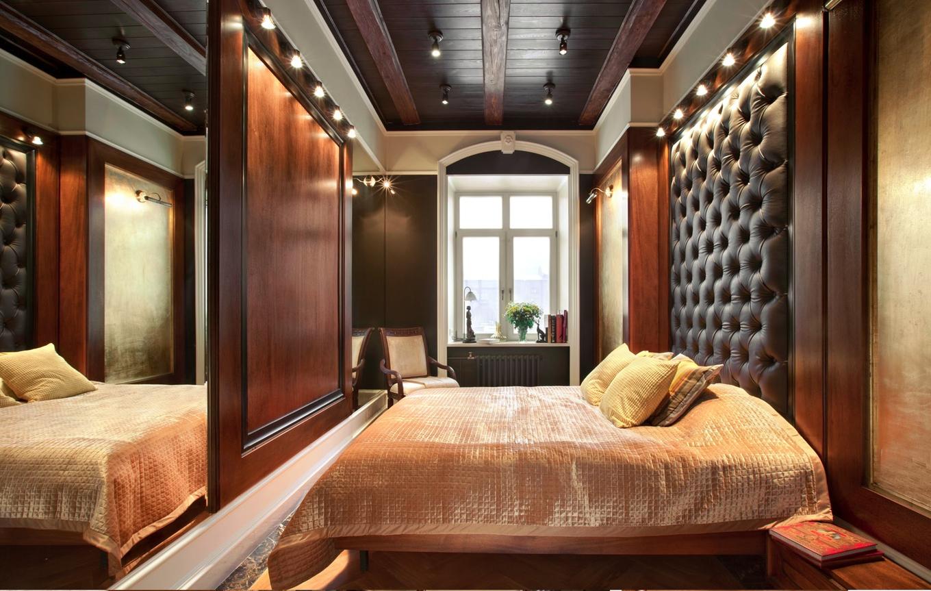Uma das regras básicas que devem ser seguidas ao decorar um quarto em tons escuros é torná-lo elegante, mas sombrio. Para fazer isso, recomenda-se aderir à seguinte proporção: use 2 luz em 2 partes do escuro. O design interior clássico é o mobiliário mais escuro e o chão, contra o fundo de um teto claro e os tons principais. As paredes, neste caso, estão autorizados a fazer tons neutros.