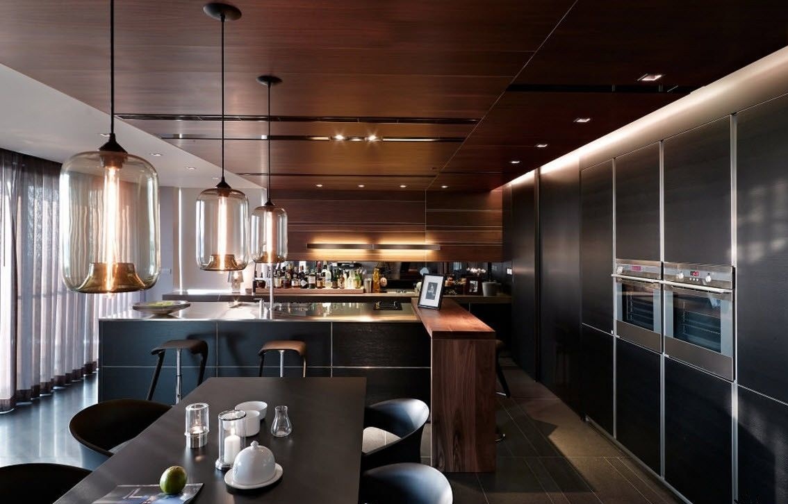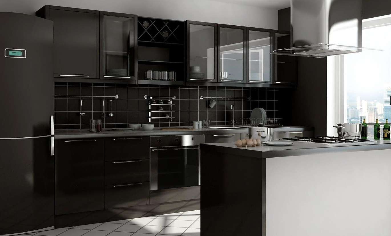 Hoje, de acordo com as tendências da moda, é o interior moderno da cozinha de cores escuras que prevalece