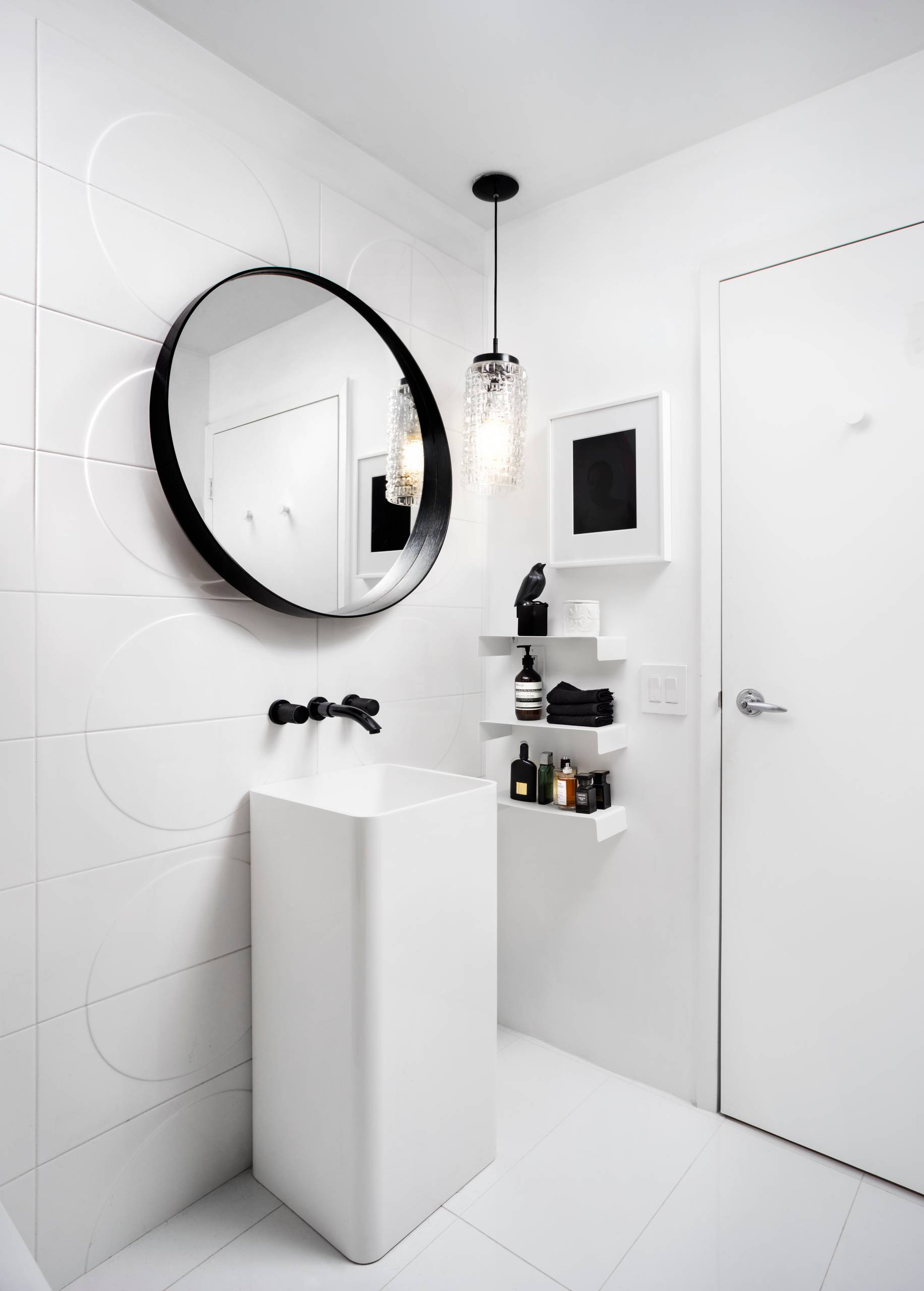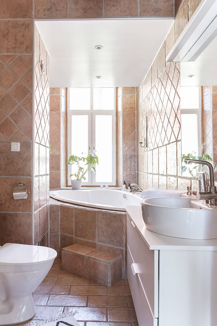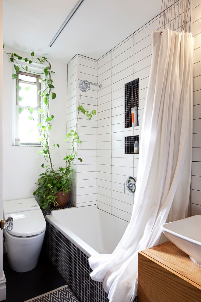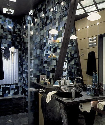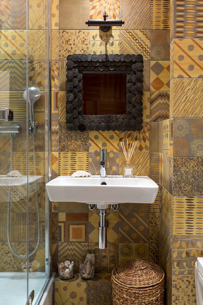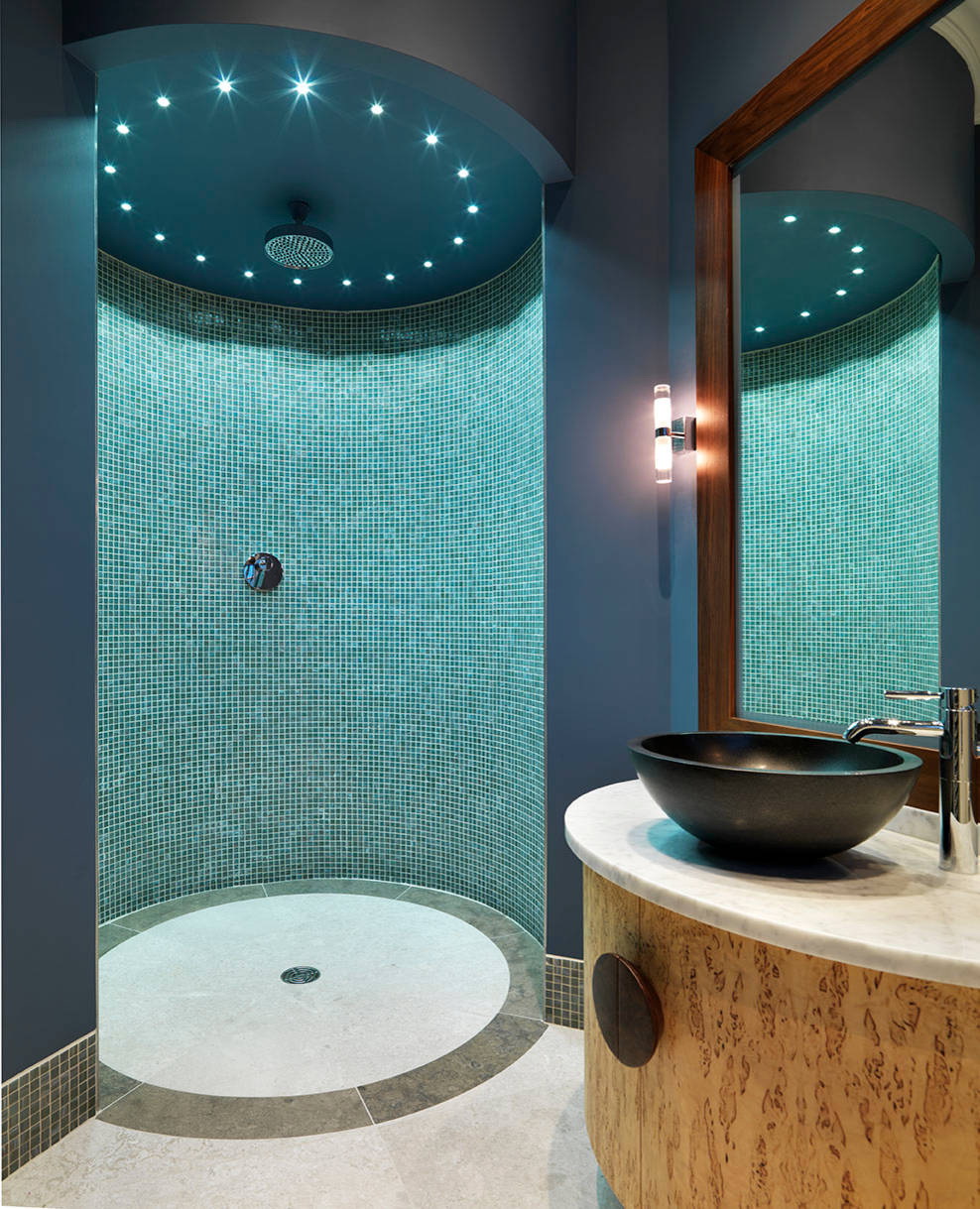 - As paredes e o teto do banheiro (somente no banheiro) podem ser feitos da mesma cor. Ou faça uma transição suave de uma cor para outra, sem separar a linha do teto.