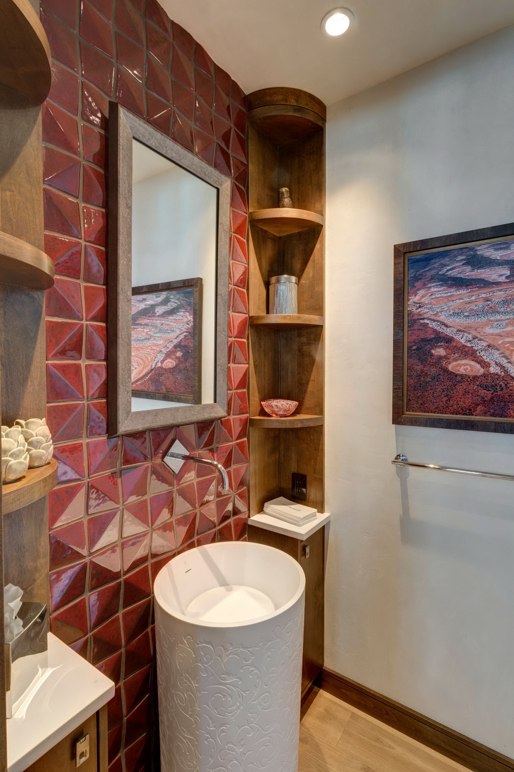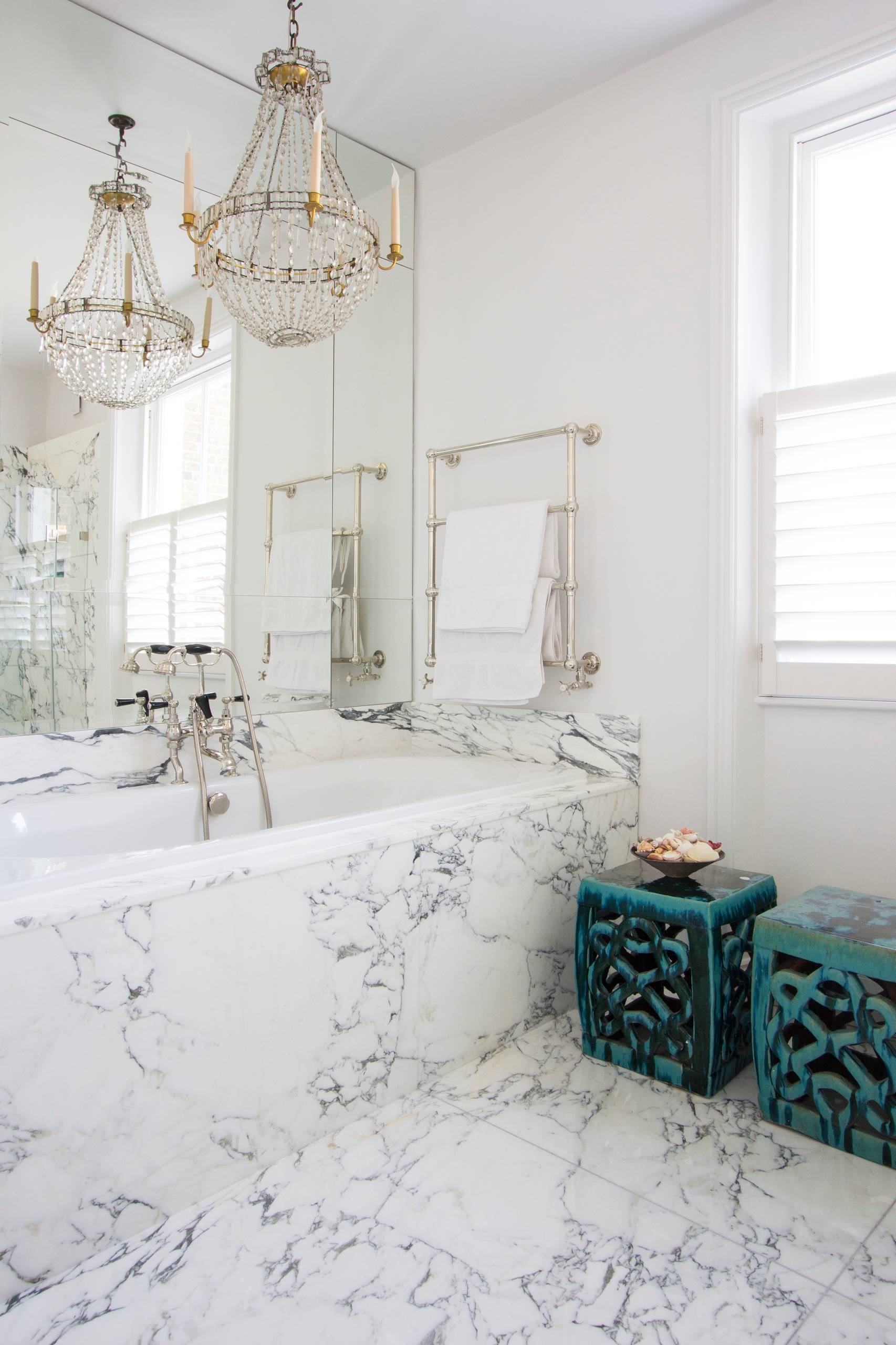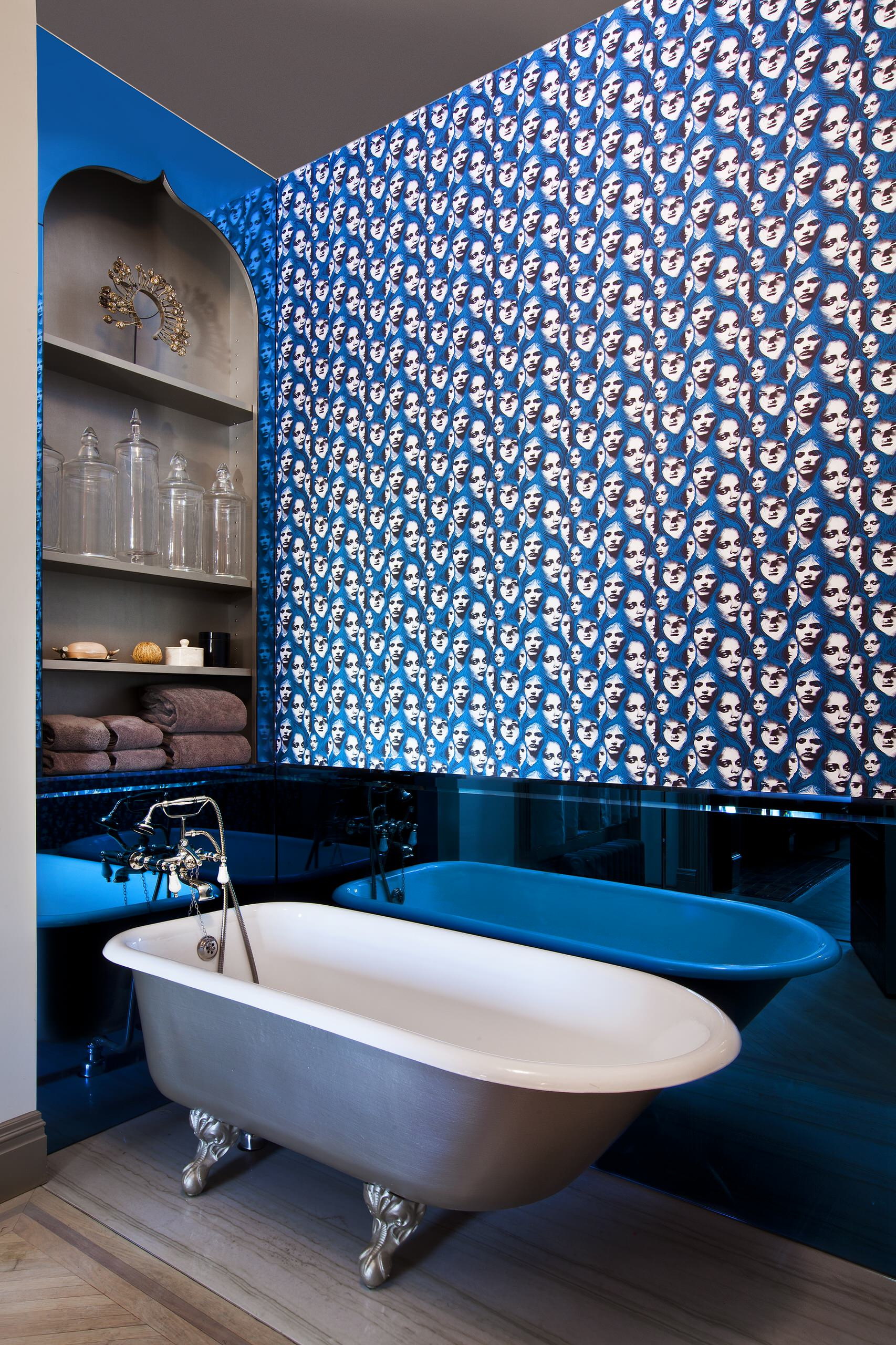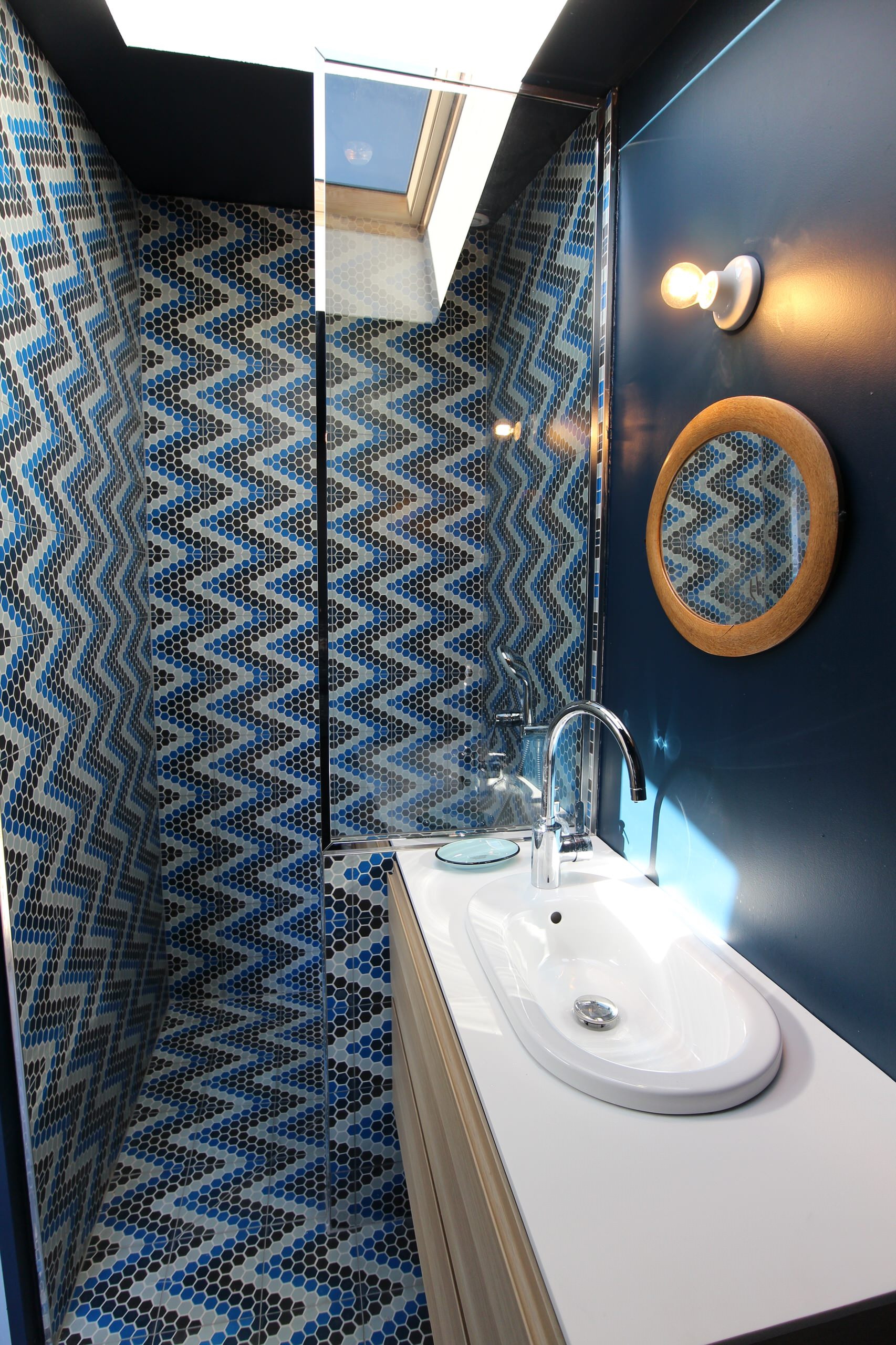 - As paredes e o teto do banheiro (somente no banheiro) podem ser feitos da mesma cor. Ou faça uma transição suave de uma cor para outra, sem separar a linha do teto.