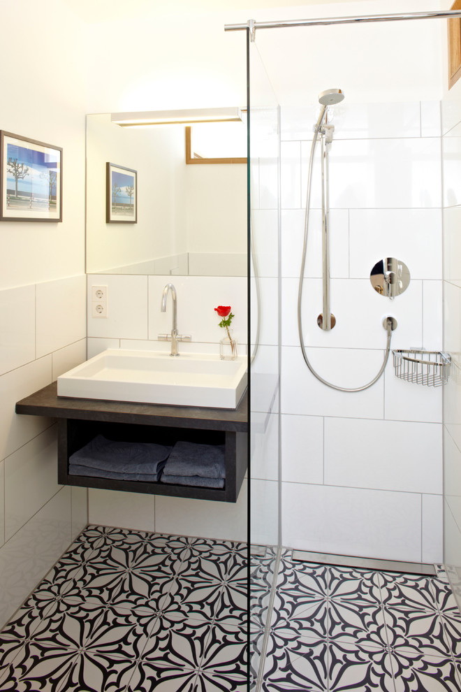- Para não fazer uma inundação na casa, é necessário abaixar o nível do chão no banheiro por 1-3 cm e equipá-lo com um orifício de drenagem.