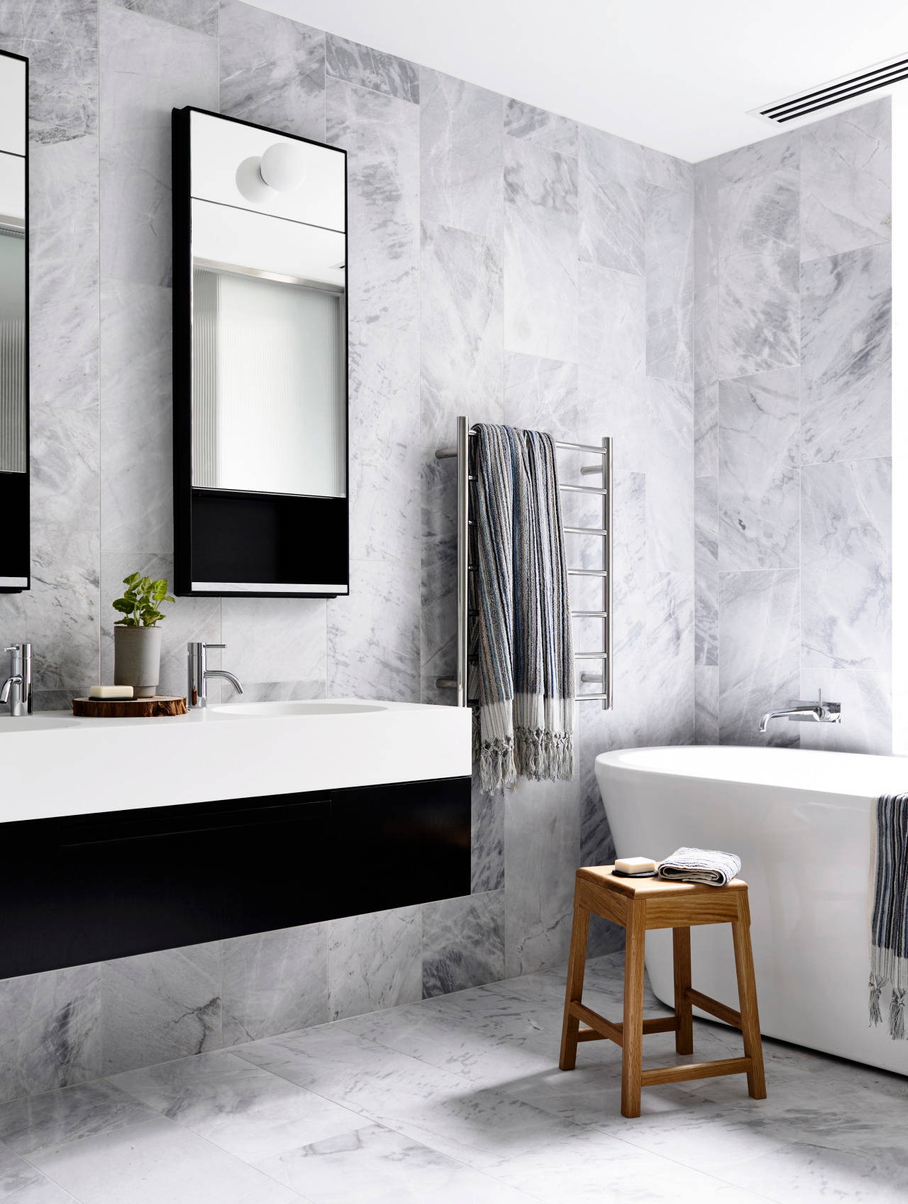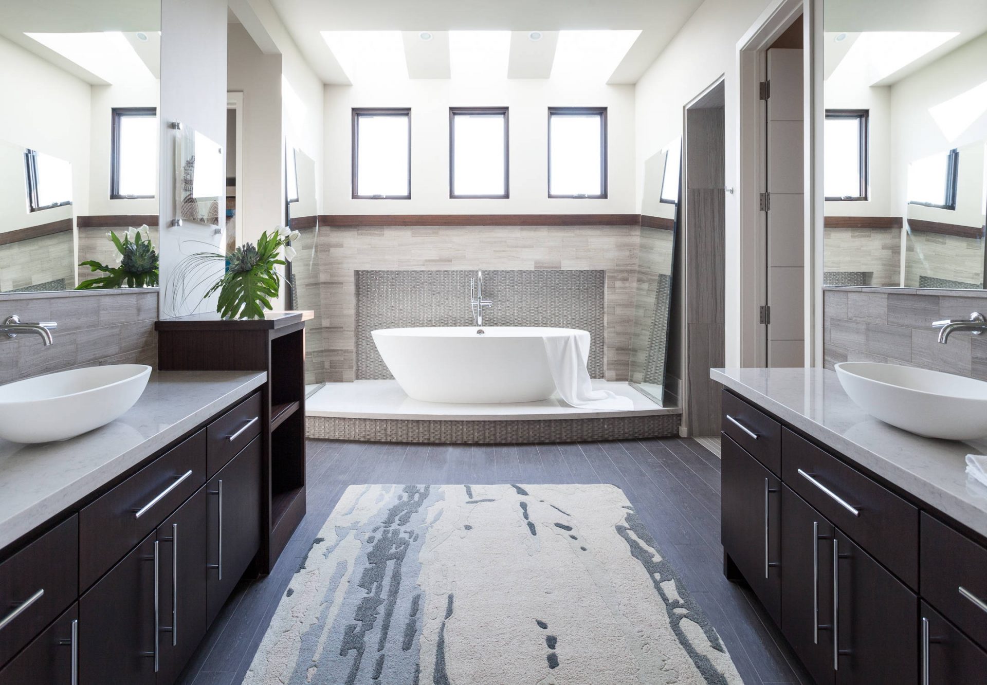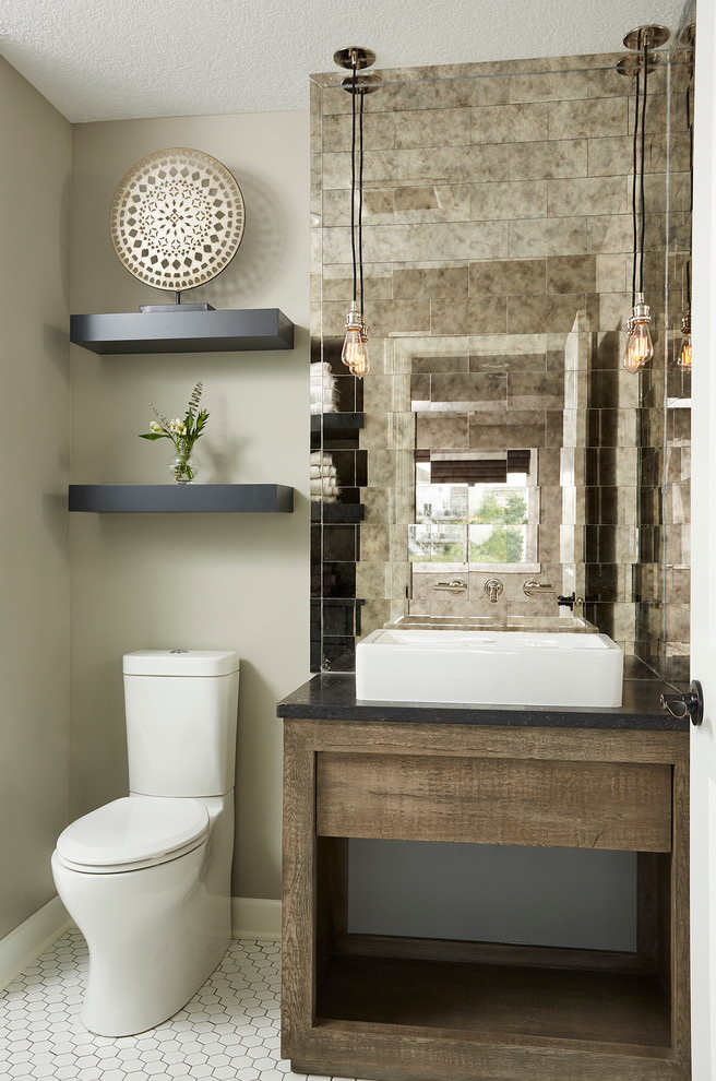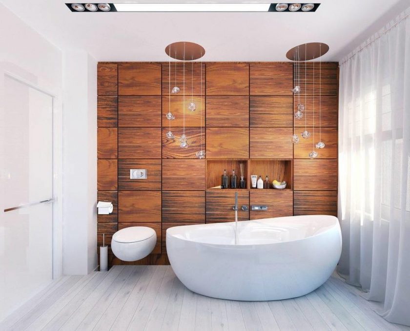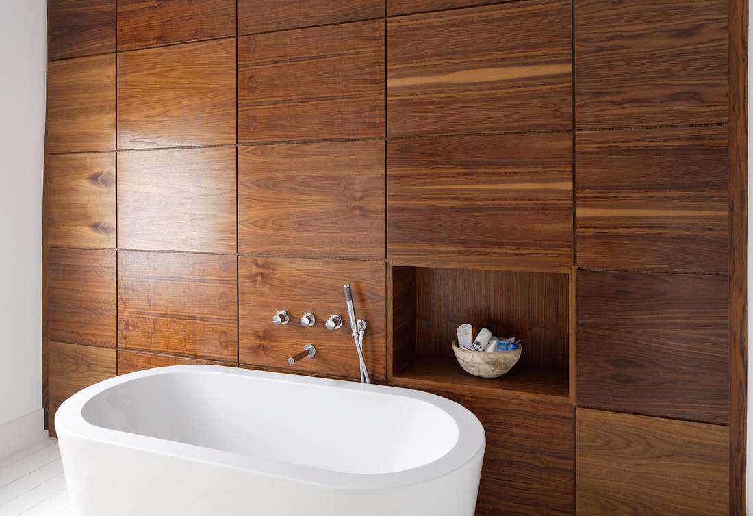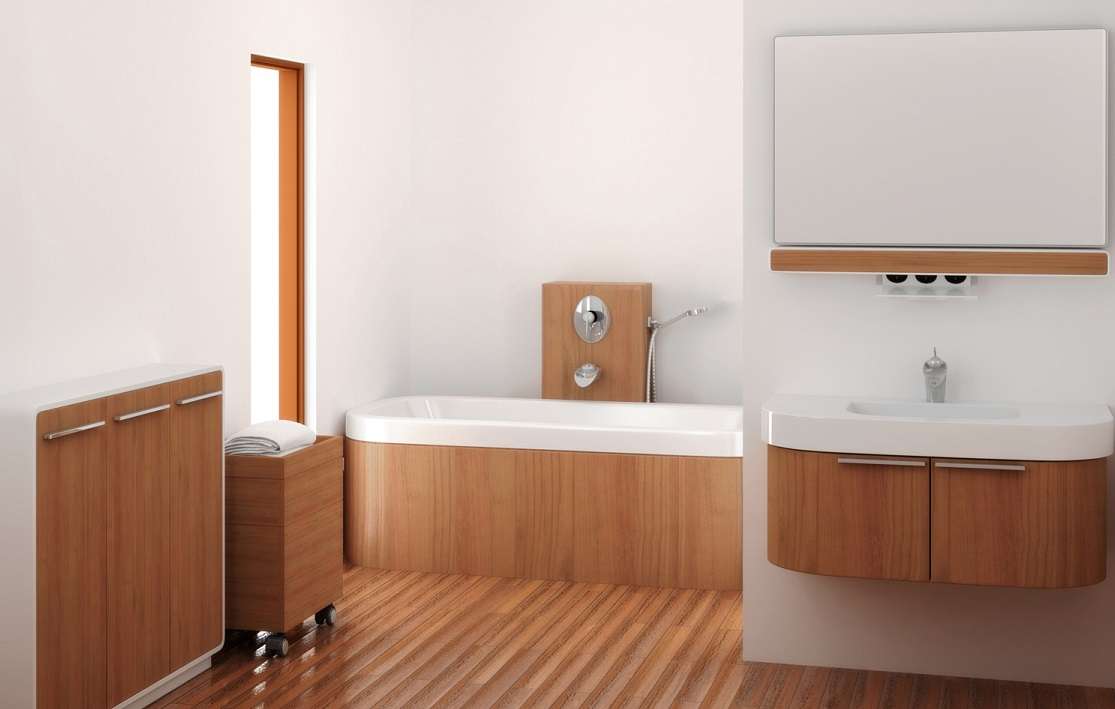Madeira também pode ser usada, ajudará a apoiar o estilo geral do banheiro. É importante escolher a madeira certa para o chão durar mais tempo.