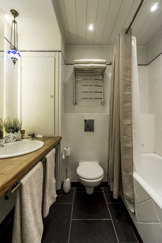 Seleção de móveis e encanamento leva à conclusão do projeto do banheiro. Nesta fase, vale a pena ser guiado apenas pelos seus desejos. Precisamos cuidar apenas do fortalecimento das tábuas de madeira, para que possam suportar a carga de um banho completo.