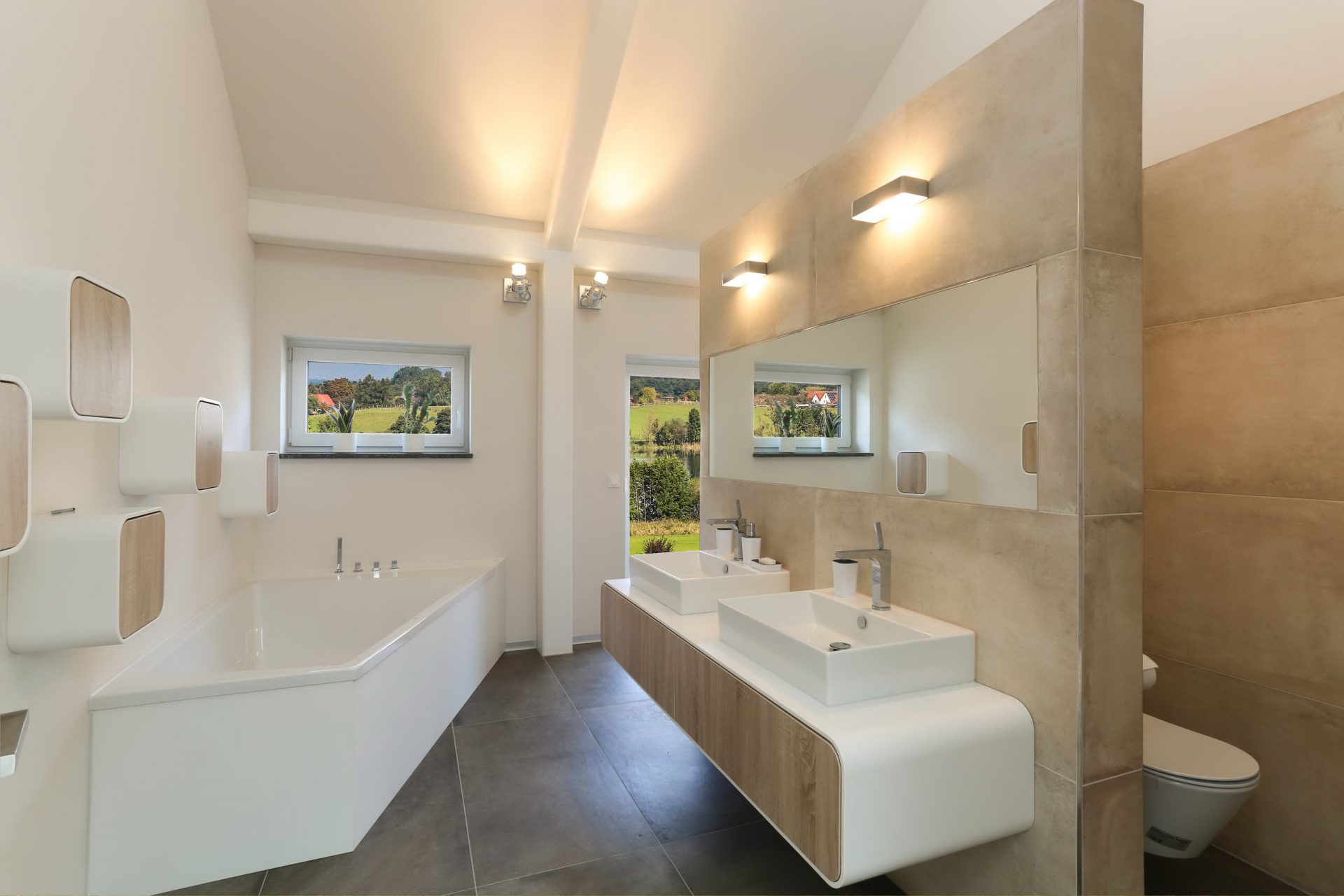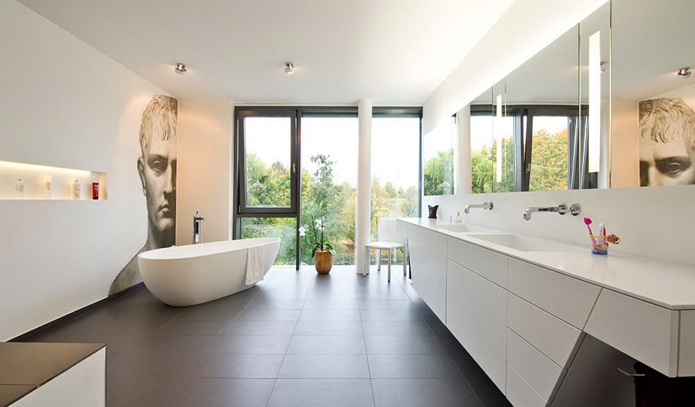 Em uma casa particular, há muitas opções interessantes para onde colocar o banheiro. Em casas de dois andares é costume equipar um banheiro no segundo andar, ao lado dos quartos.
