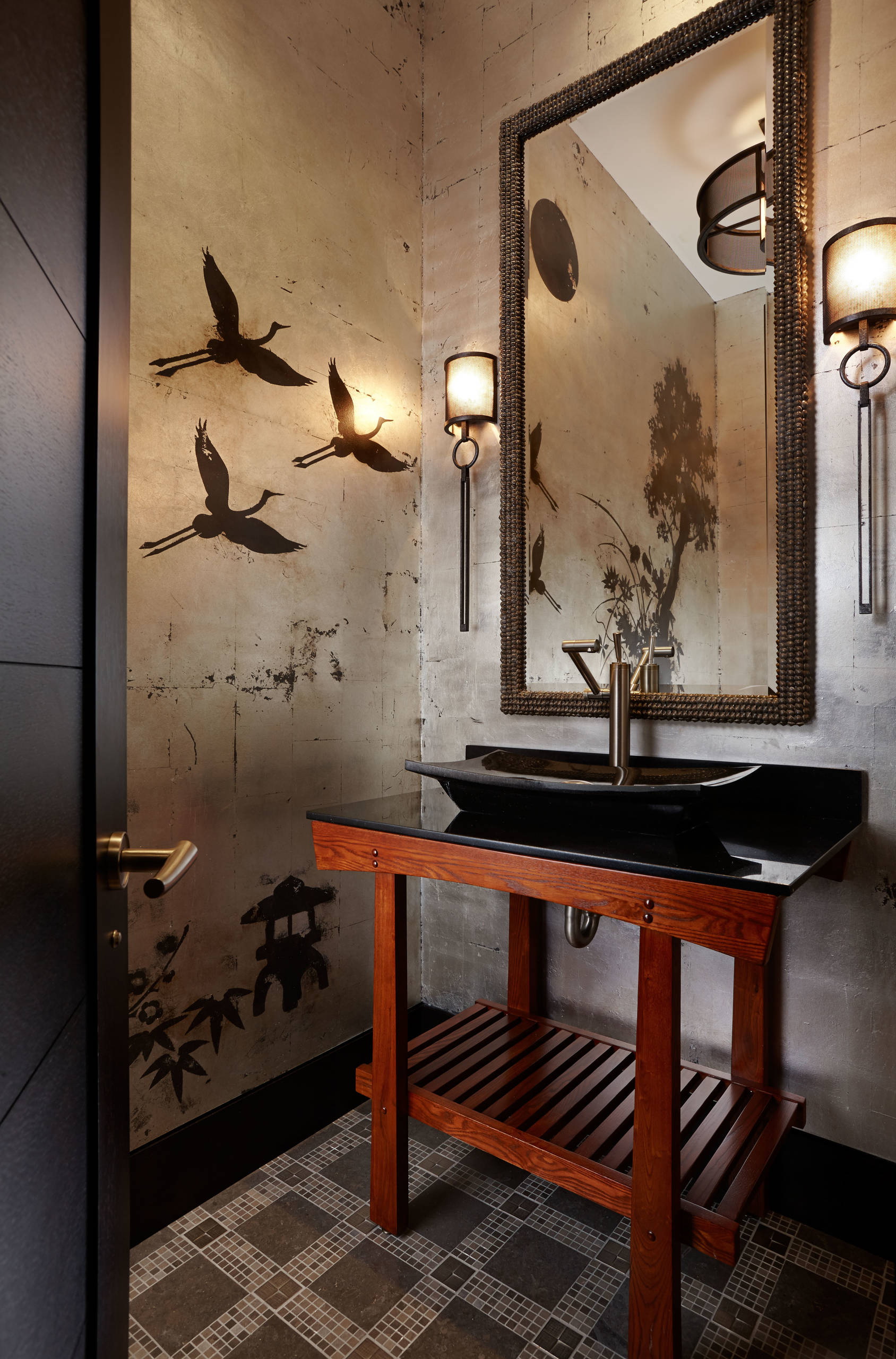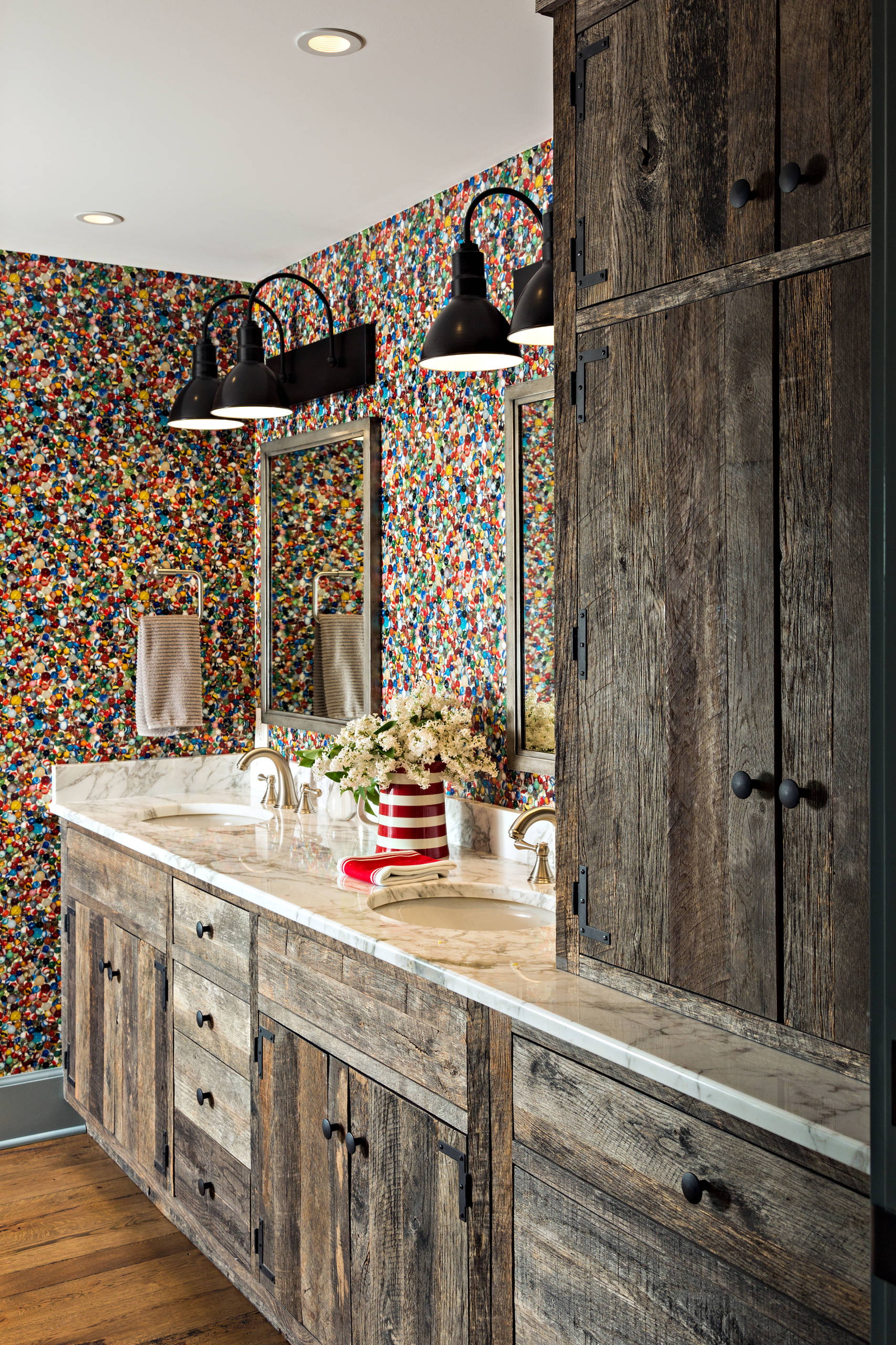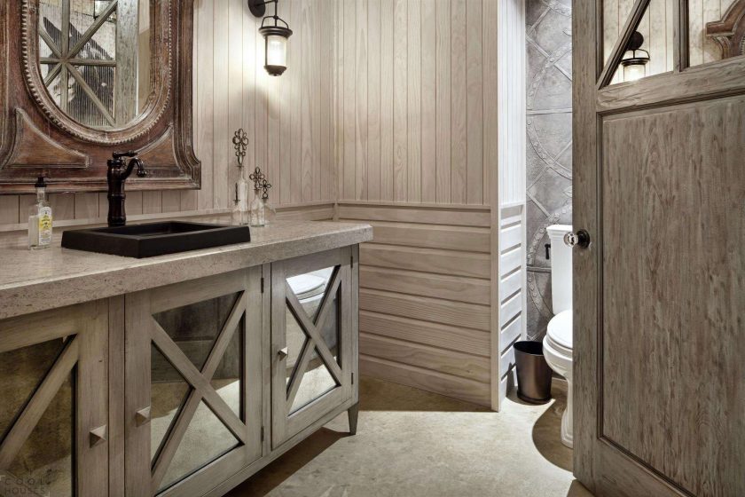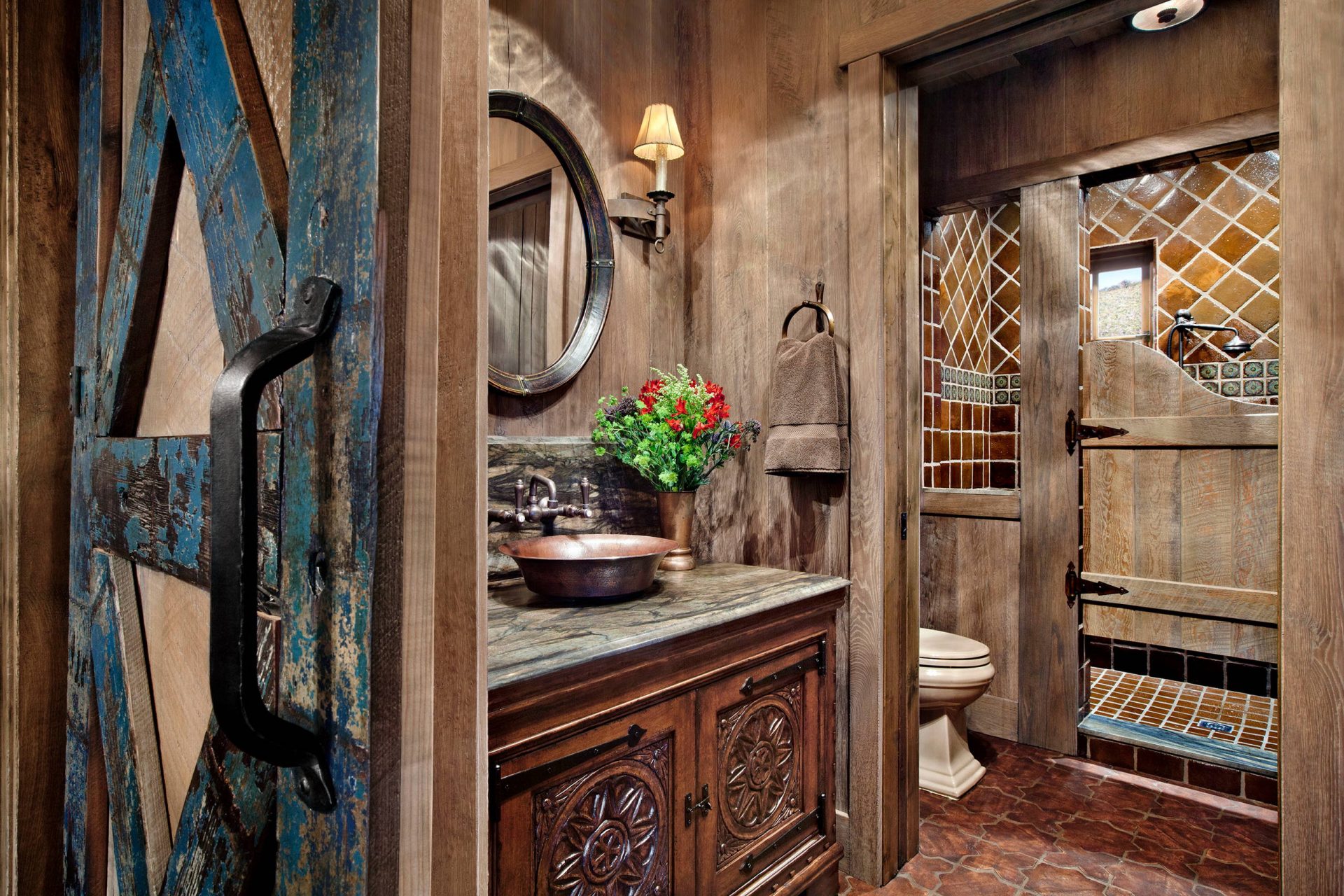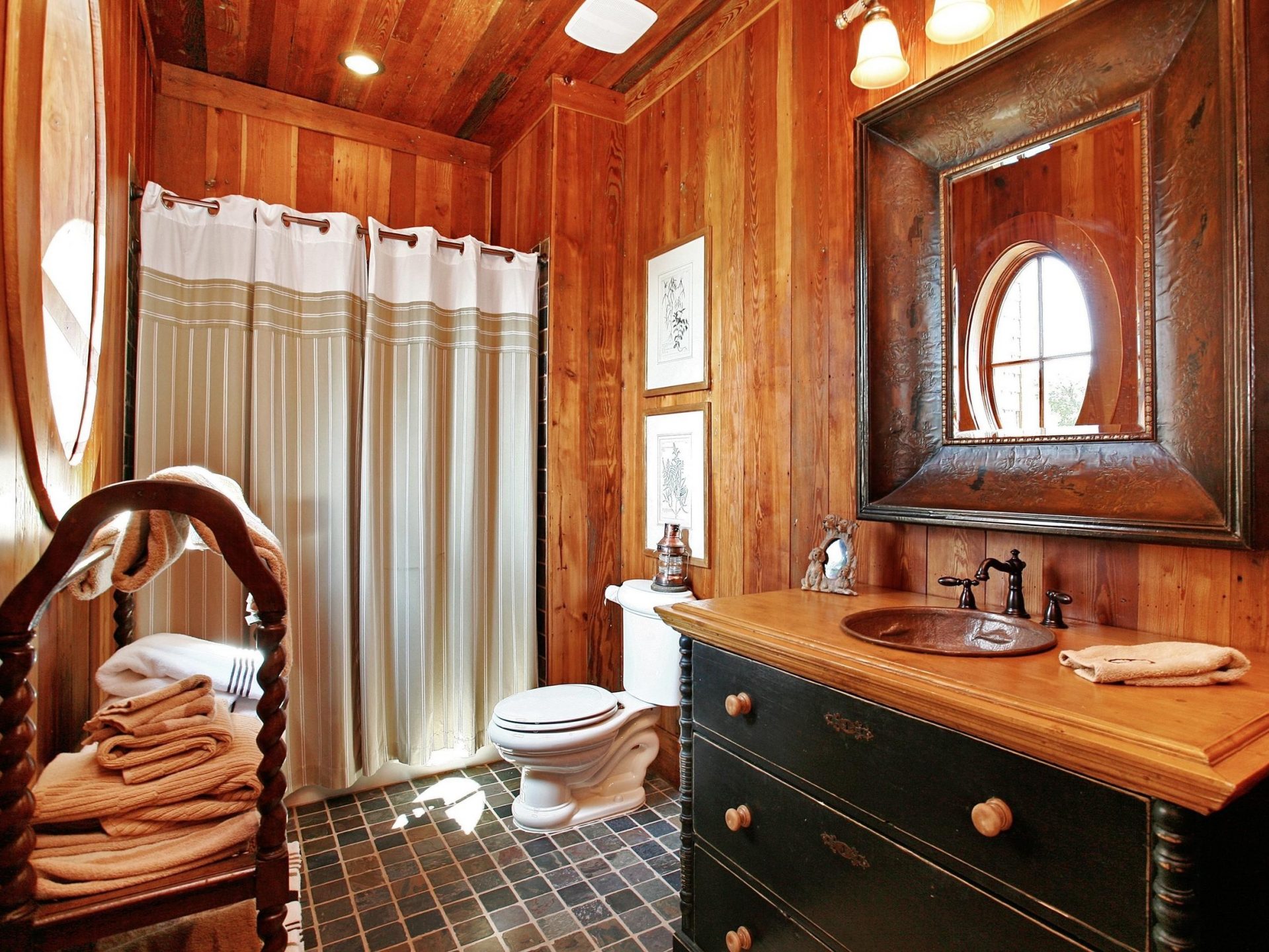 - Música country. Cores quentes e móveis de madeira são usados. Música country é ótima para o banheiro por causa de sua simplicidade e elegância.