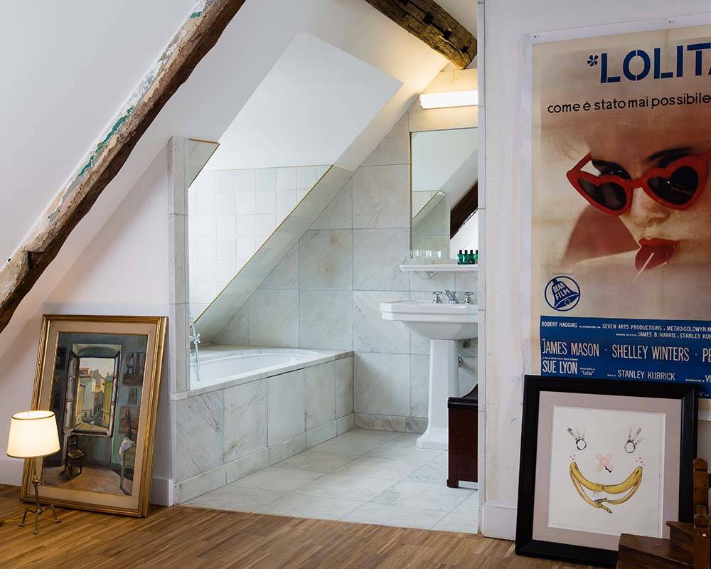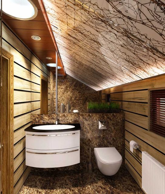 Acessórios de banheiro no sótão são uma opção interessante. Para quartos ou o gabinete não é muito confortável, e o banheiro é perfeito.