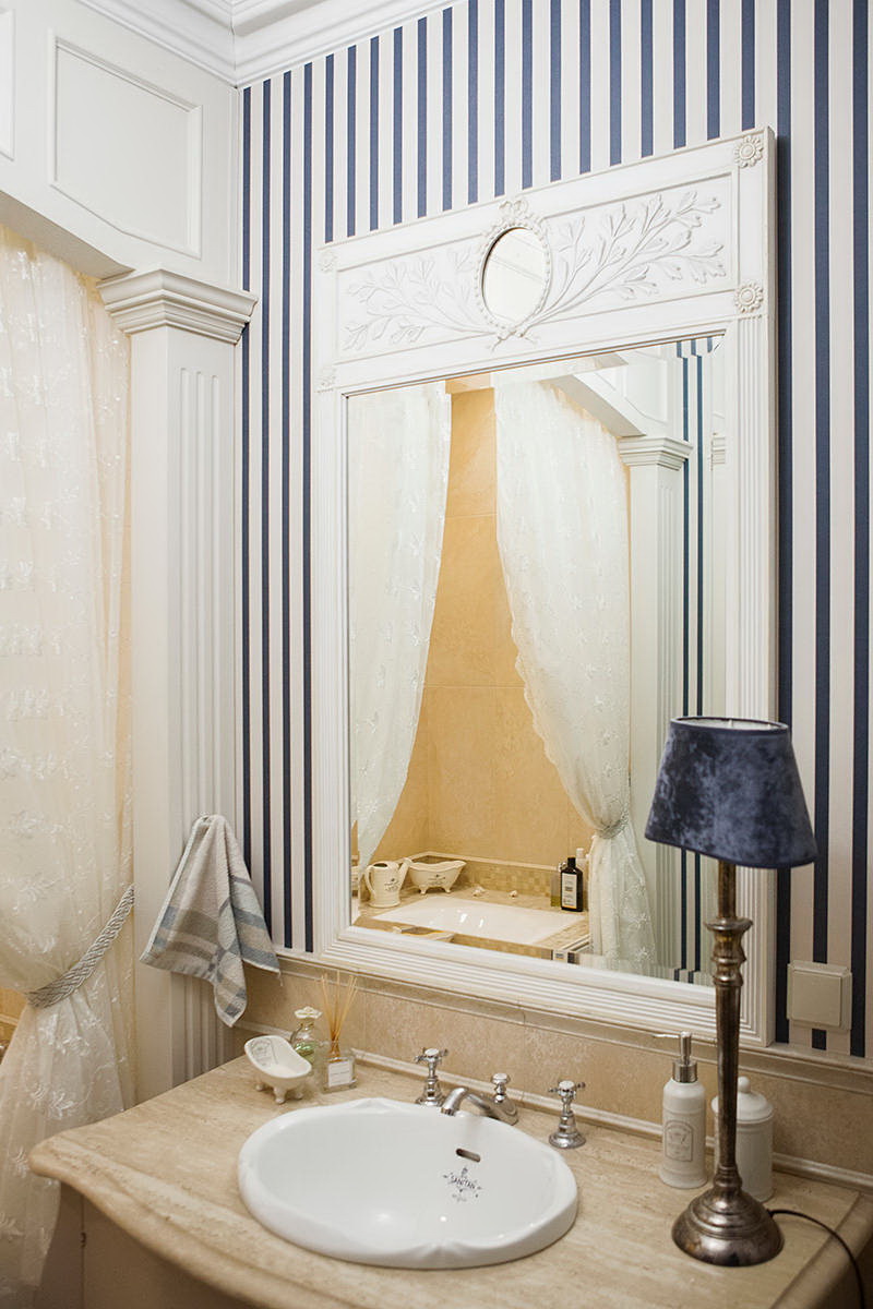 Se o quarto for espaçoso, pode ser colocado nele. armário para lençóis e toalhas, prateleiras ou cômoda para produtos de higiene pessoal. O espelho - elemento obrigatório do banheiro. Se a casa tiver crianças, não se esqueça da disponibilidade de escadasque os ajudará a chegar ao lavatório sem impedimentos.