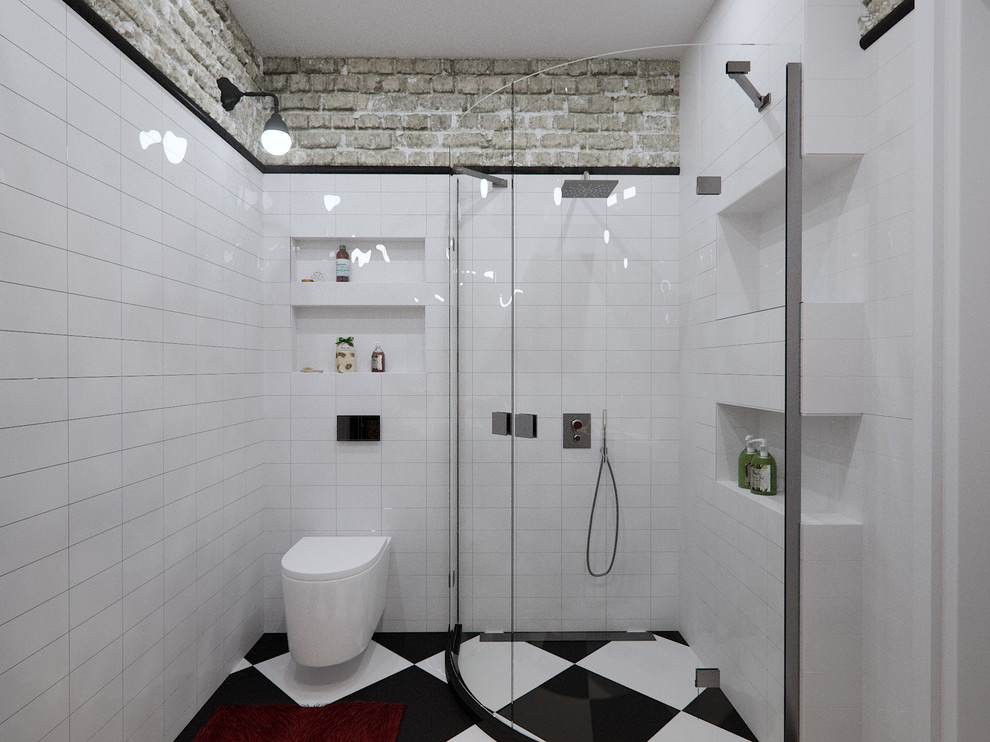Para uma pequena sala, é melhor escolher uma cabine de chuveiro, o que economizará espaço livre. E se você escolher um banheiro pendurado, poderá economizar alguns centímetros de espaço utilizável.