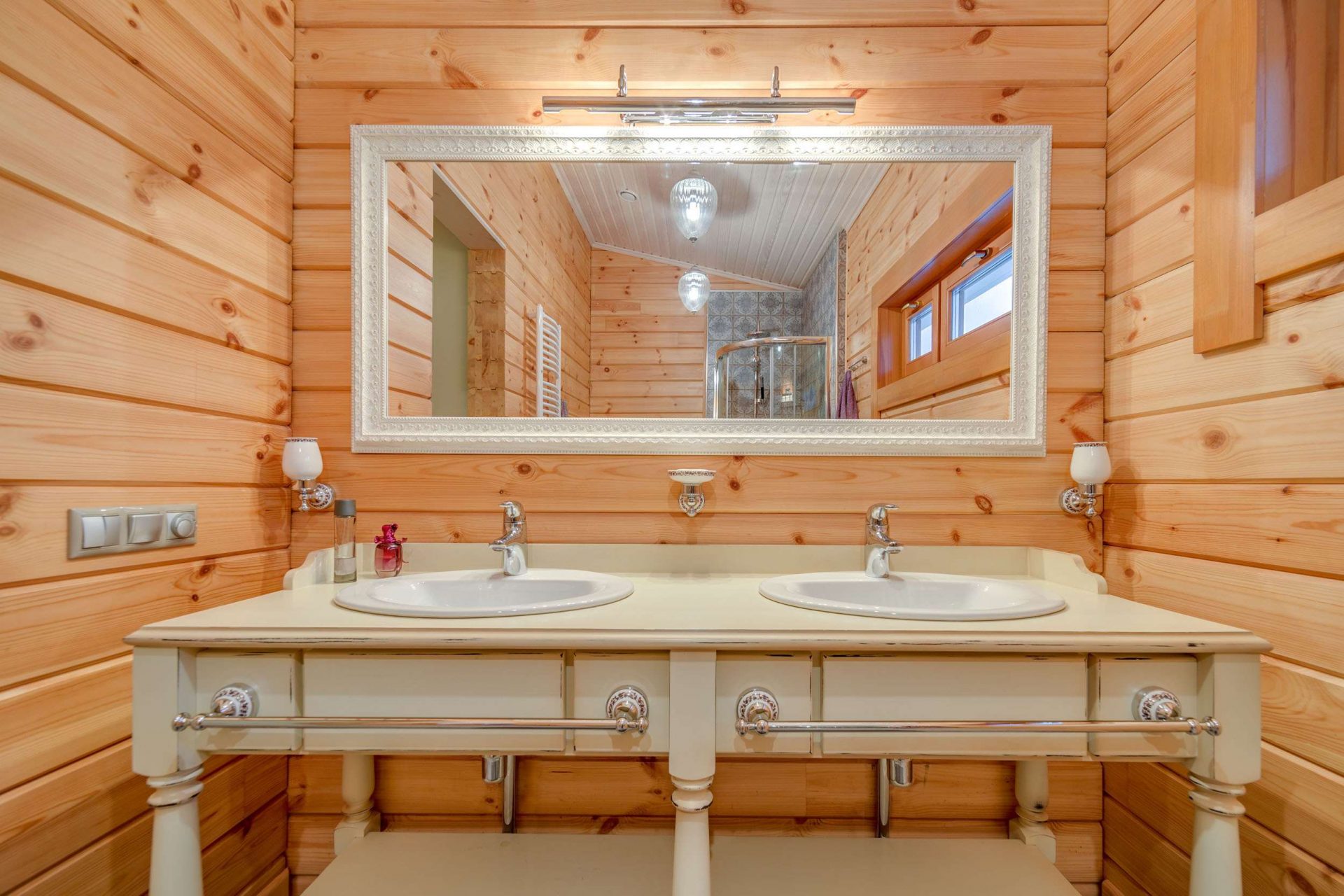 O alto nível de umidade no banheiro é um dos principais problemas das casas de madeira. Como fazer um banheiro, ao mesmo tempo bonito e funcional? Quais materiais de acabamento ajudarão a proteger a parede da umidade? Que projeto escolher para um banheiro em uma casa de madeira?