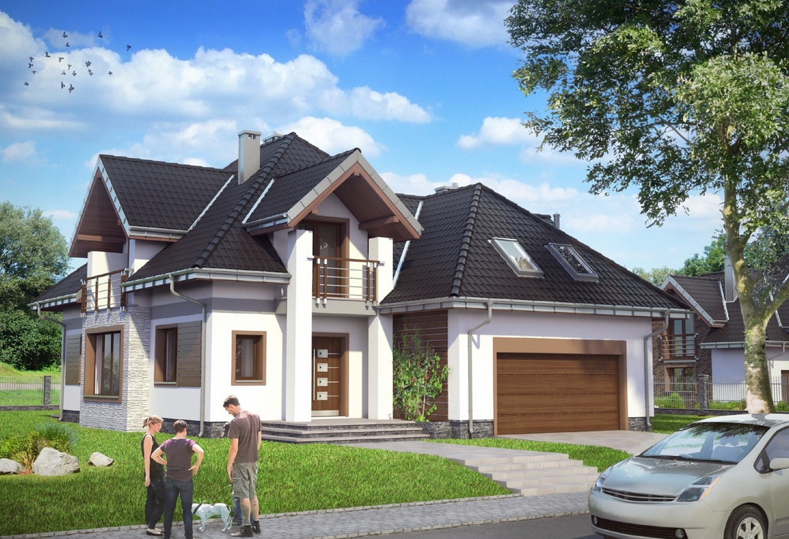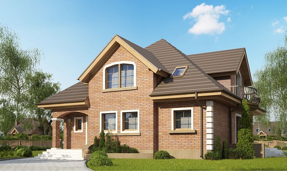 Muitas vezes a decoração principal de tais casas são telhados de forma complexa com um material de cobertura atraente. Mas mais sobre isso abaixo. Se um projeto com um telhado lacônico for escolhido, o tijolo decorativo ajudará a decorar a fachada.