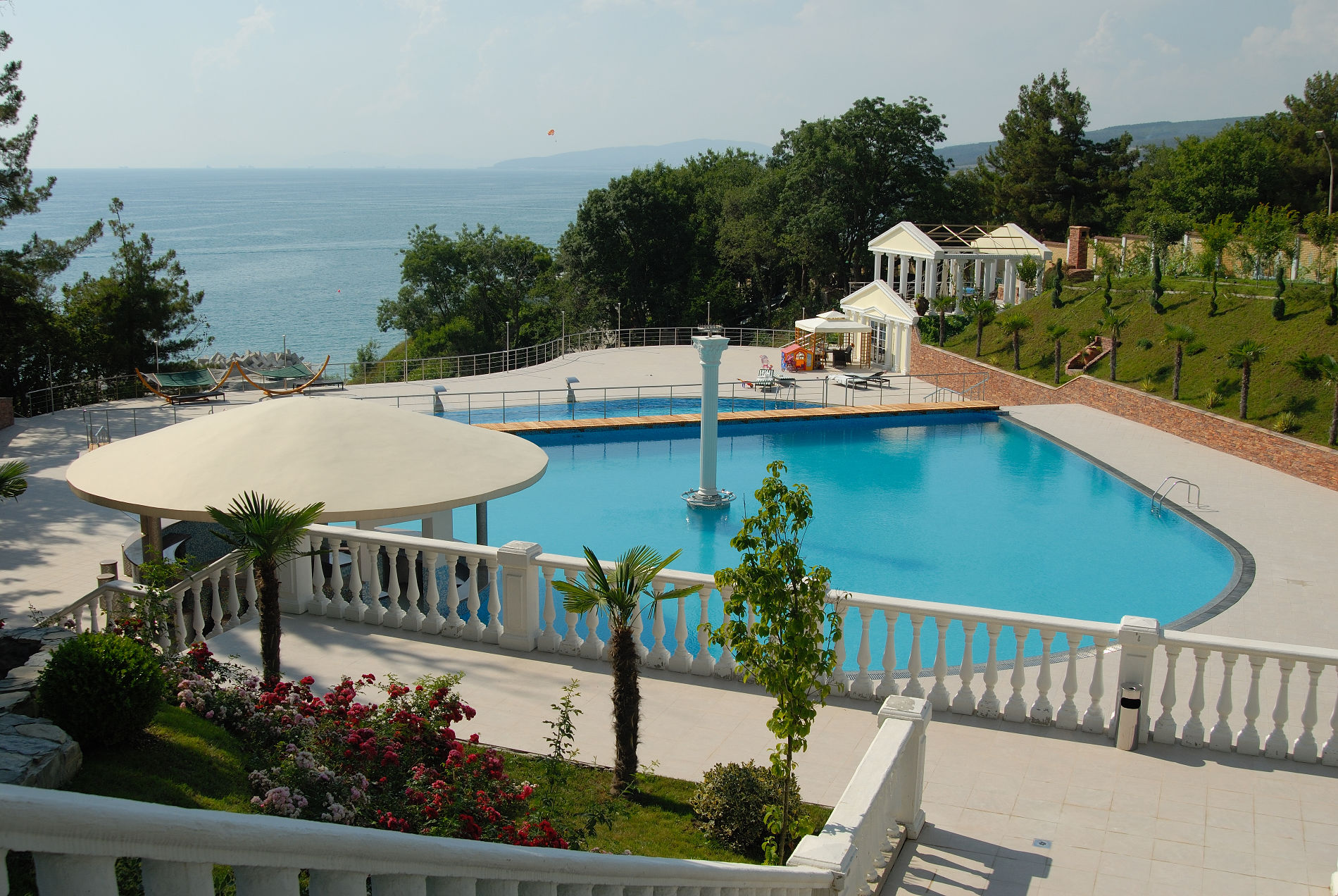 - Clássico. Neste estilo muitas casas, casas de veraneio, mansões e outros edifícios são feitos. O estilo clássico deve parecer luxuoso e caro. Use mármore, cerâmica, pedra natural, mosaicos. Estátuas, fontes, vasos com flores se encaixarão com sucesso no design. Faça tudo melhor em tons claros de azul, branco, bege.