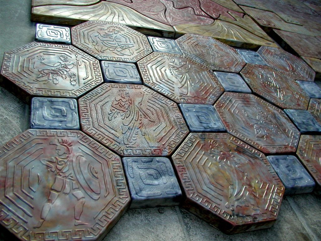 Lajes de pavimentação, que vieram da Holanda, inventaram no século XIX. É feito de argila com uma mistura de corantes - é formado primeiramente por um buraco sob alta pressão, e depois disparado uma vez. O resultado é alta densidade e tem uma lista de vantagens: