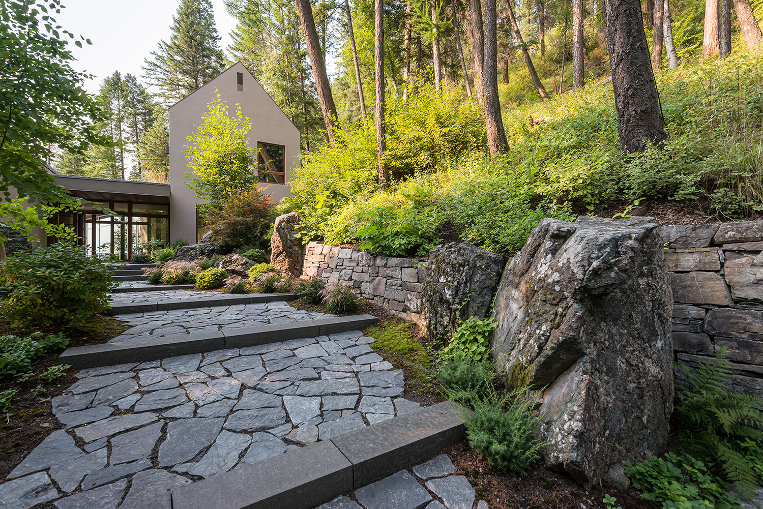 - Beleza natural. A pedra natural é um belo material com o qual somente madeira pode ser comparada. Não é pintado como materiais artificiais, mas a simplicidade, a naturalidade de suas próprias cores parece boa, especialmente se você as pegar com gosto, para que elas se encaixem no jardim e nos prédios.