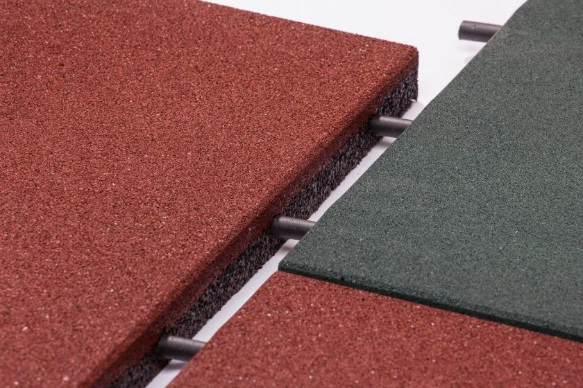 - Segurança Borracha - material macio, caindo sobre o qual é difícil se machucar. Se as crianças ou os idosos tiverem um descanso no país, os trilhos de borracha serão muito convenientes para eles.