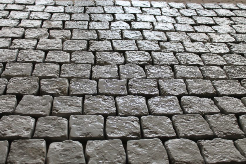 - Vibropressing Uma massa está sendo preparada, despejada em moldes e, por alguns segundos, enviada sob uma prensa vibratória, que simultaneamente transmite um padrão à superfície superior. Após o resultado ser enviado para esfriar e considerar pronto.