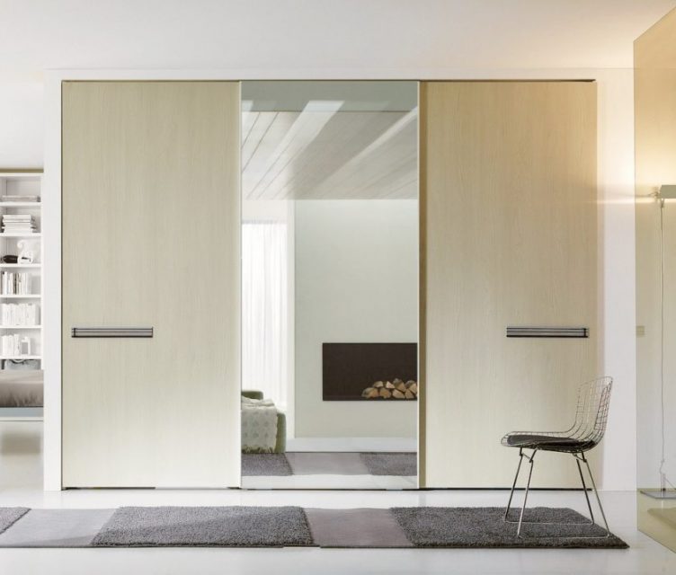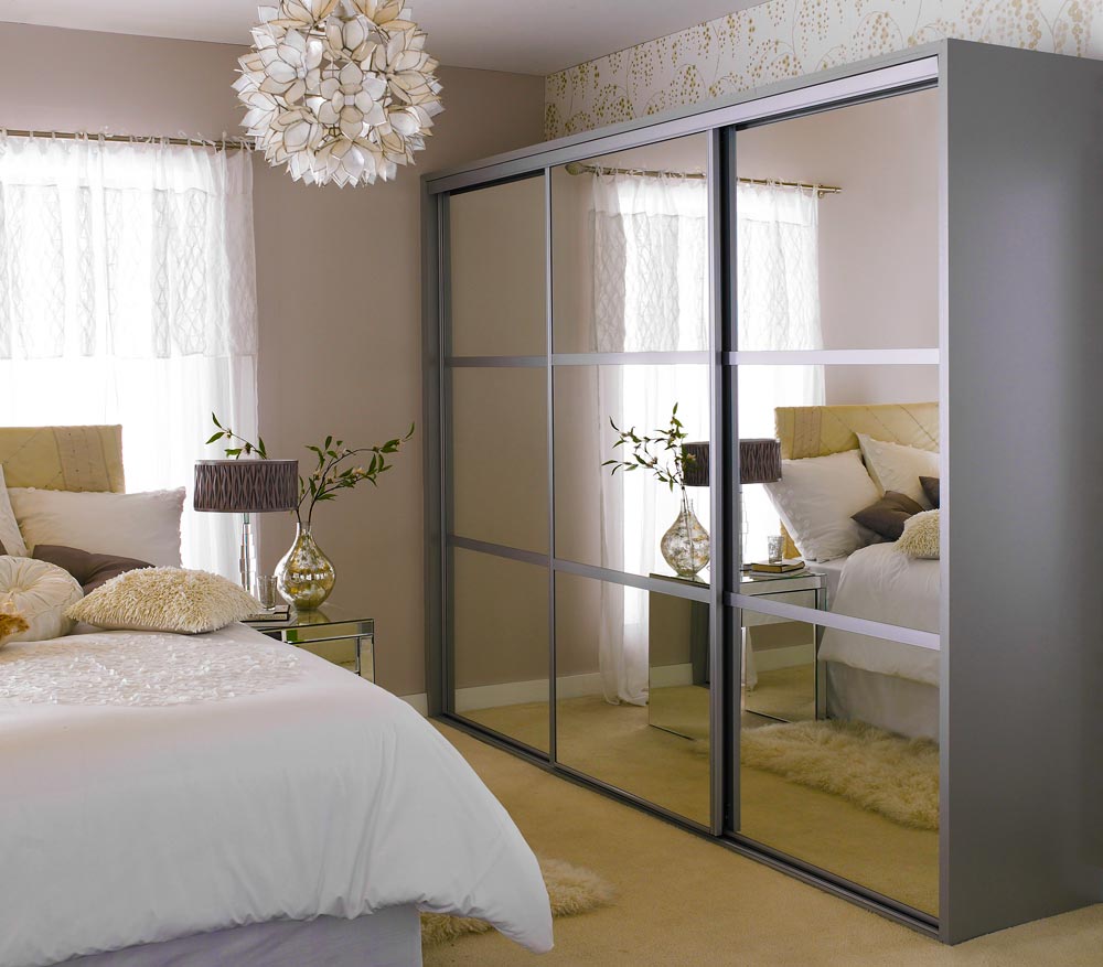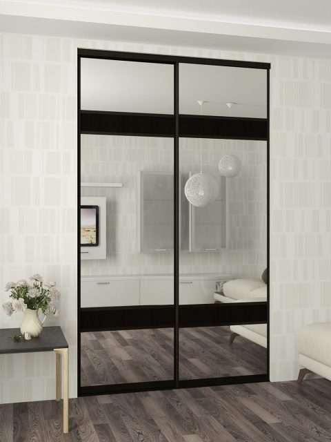 Na instalação de portas de espelho é necessário considerar não só a área do quarto, mas também a altura tetos. Um espelho do chão ao teto, visualmente, torna o teto mais alto.