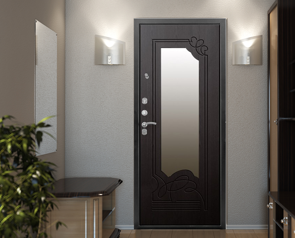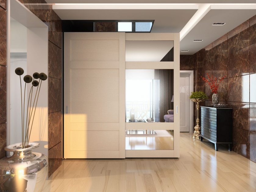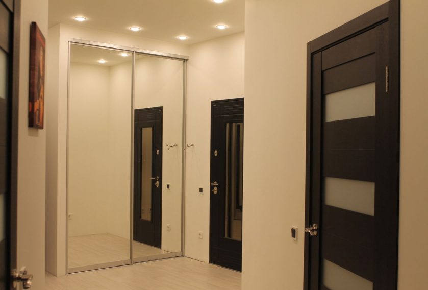 Portas com espelhos são uma ótima maneira de ampliar visualmente o espaço e torná-lo mais confortável. Quando encomendar e instalar os painéis das portas deve focar a confiabilidade do projeto e como esta porta se encaixa no interior circundante. Muito depende da forma e cor das pastilhas de vidro.
