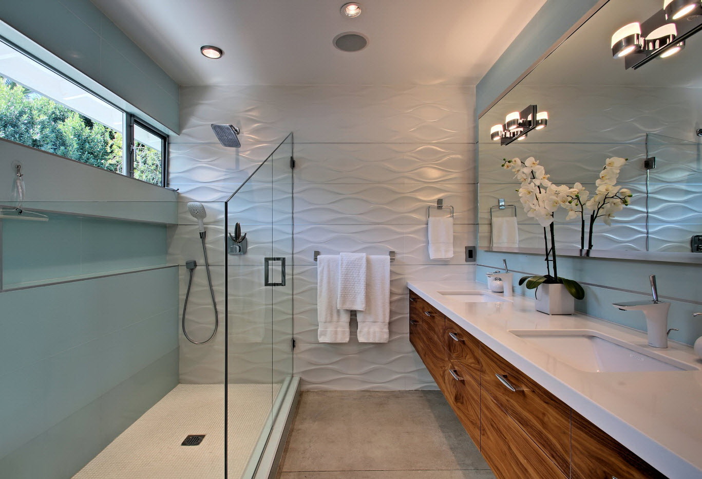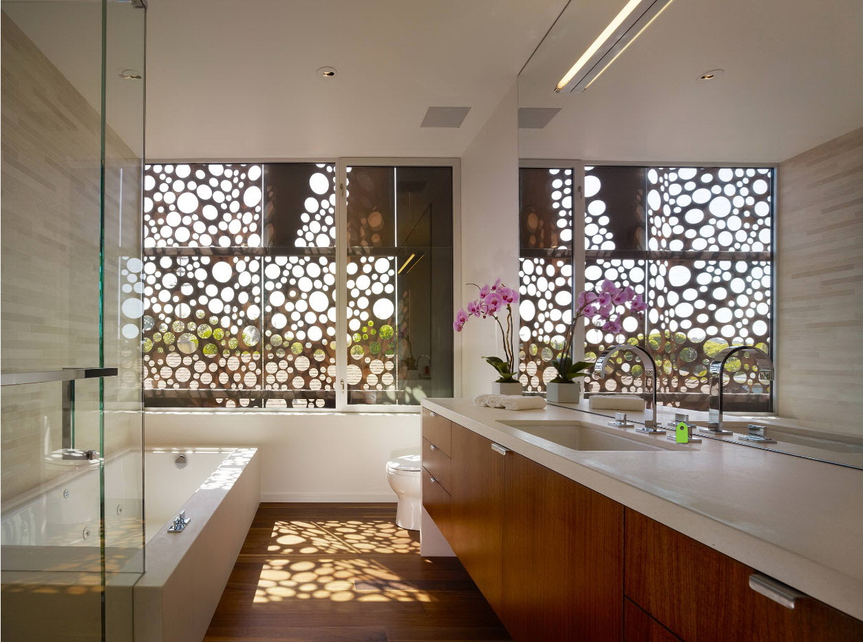 Designers também prestam atenção ao vidro, fazendo telas opacas com vidro colorido, vitrais, prata ou tinta dourada, usando materiais de pulverização ou jateamento. Modelos de vidro são: