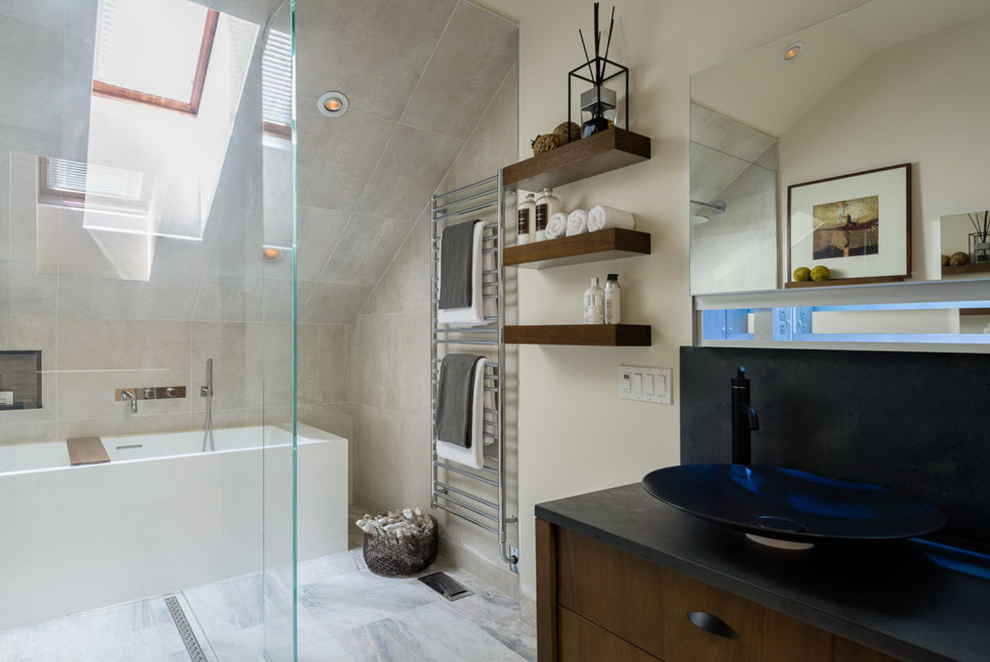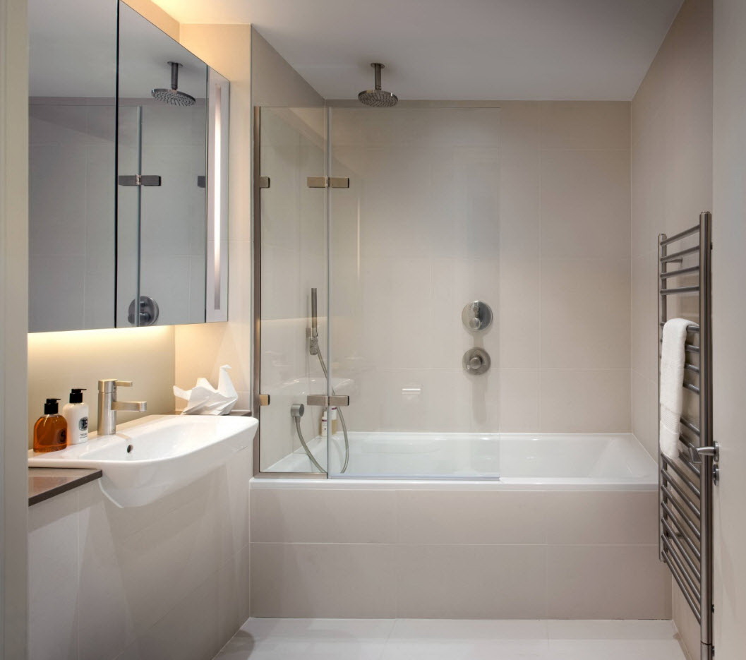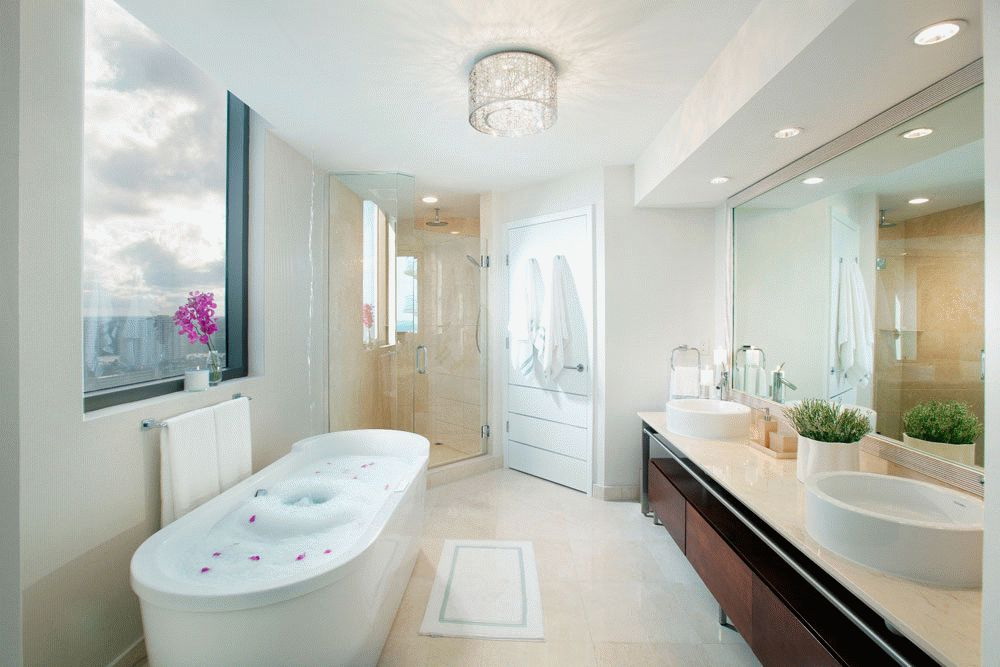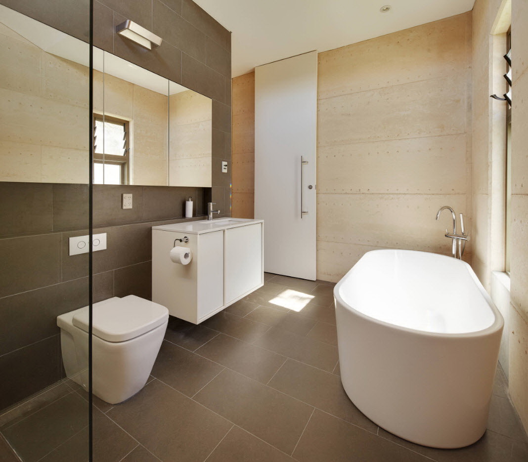 - Para eliminar o risco de inundação, é feito um baixo limiar de 5 cm, evitando que a água entre no salão. Portanto, as dimensões das portas para o banheiro são pequenas, e sua instalação é realizada acima do nível de opções de interiores.
