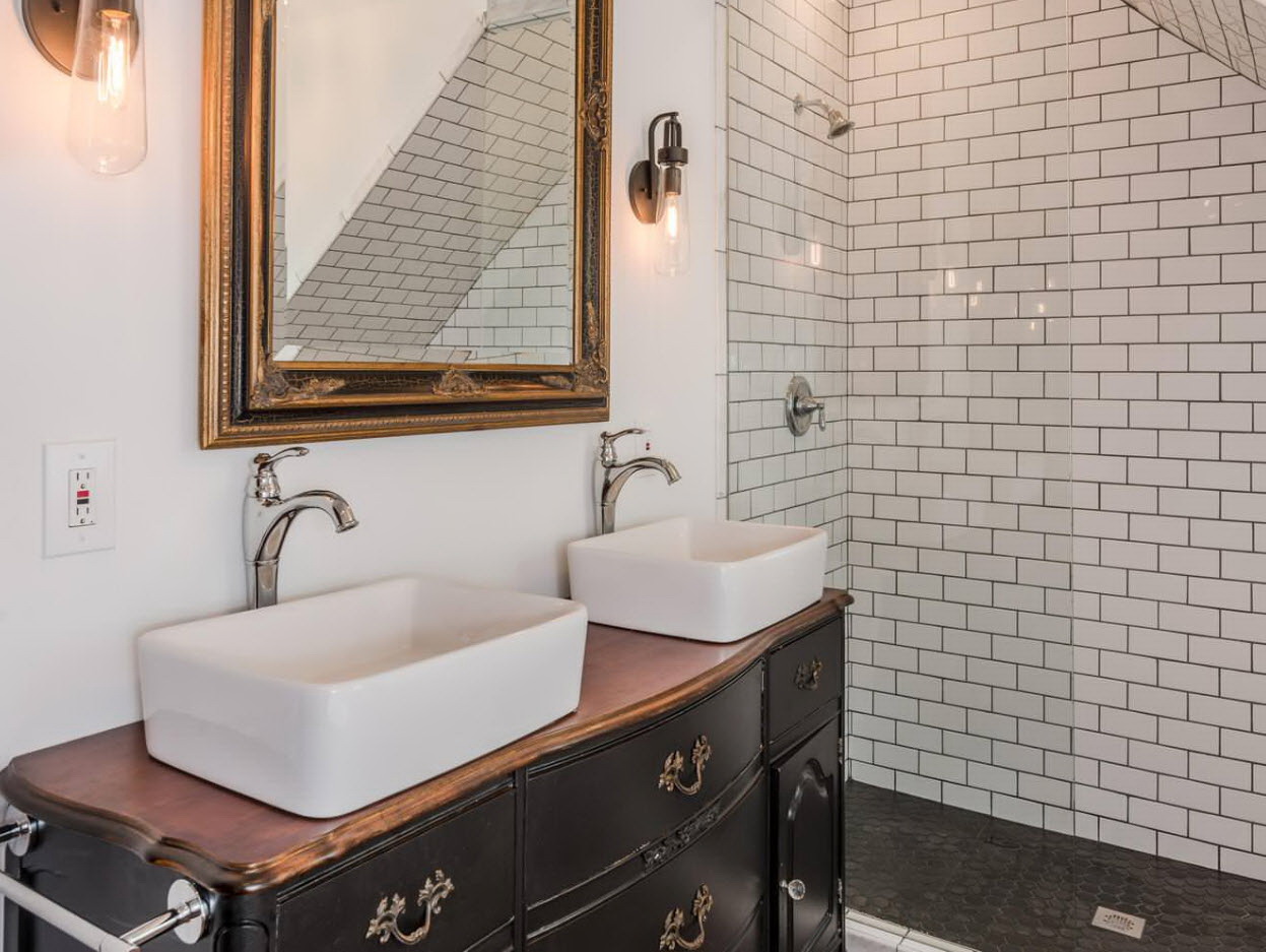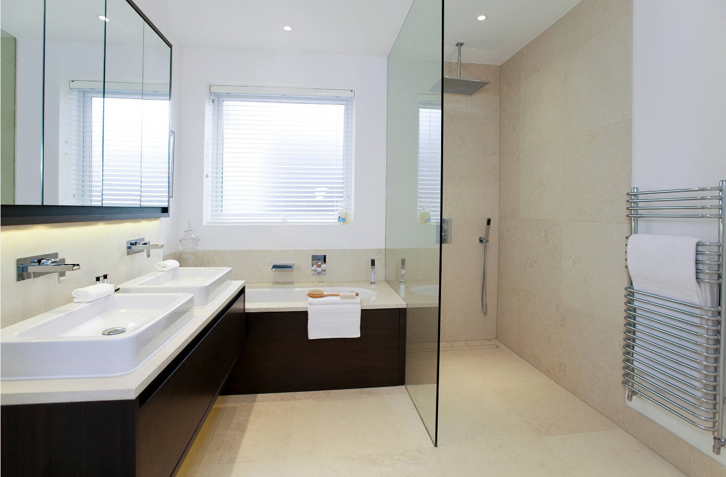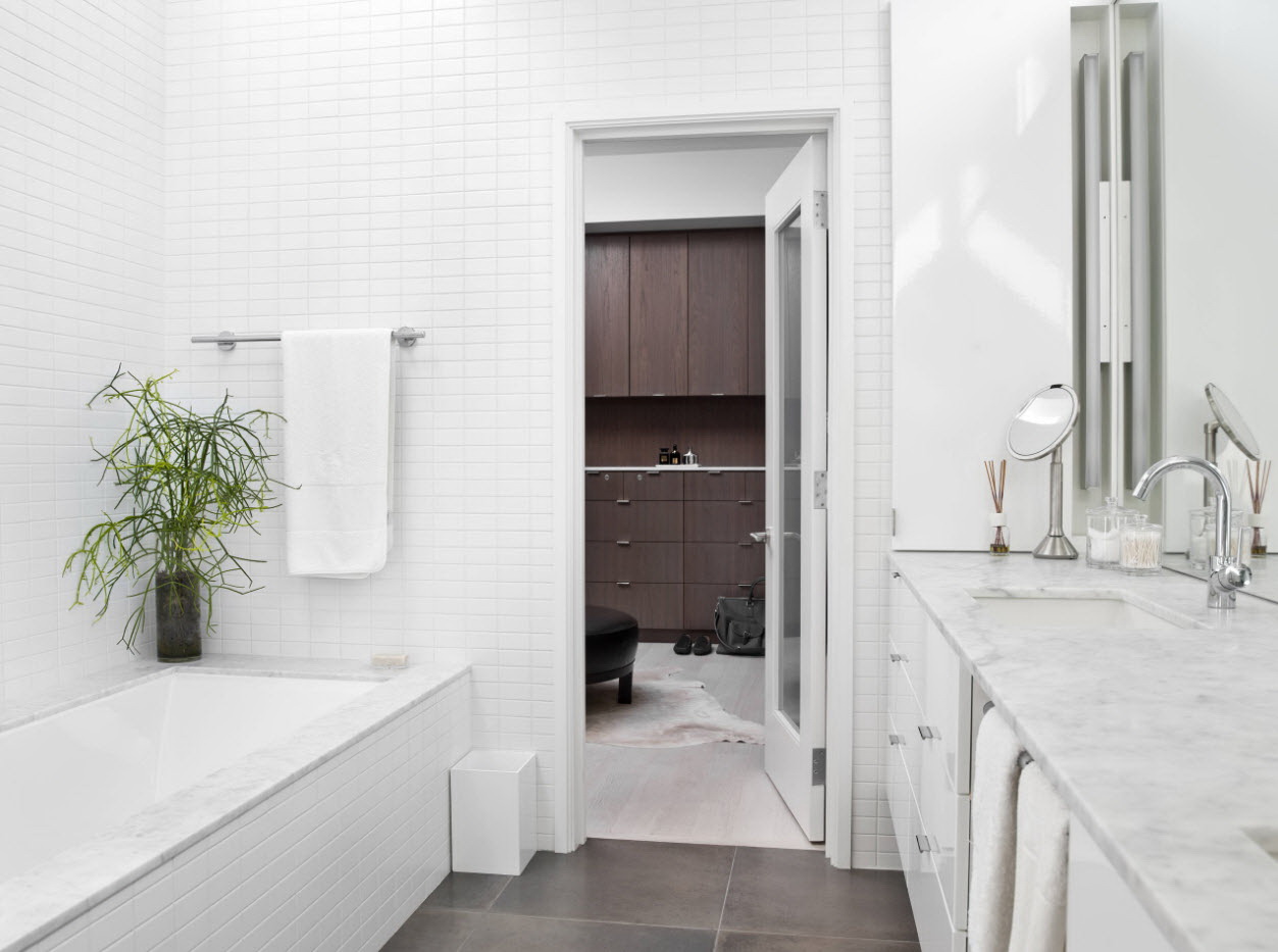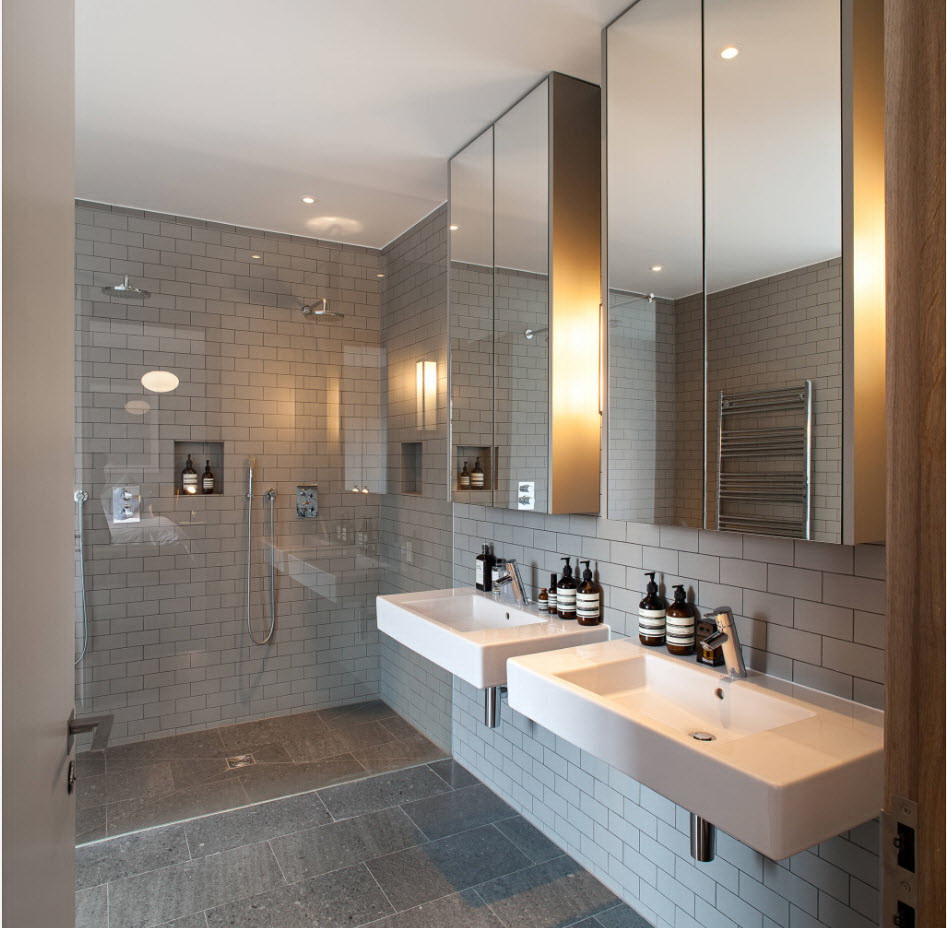 - Para eliminar o risco de inundação, é feito um baixo limiar de 5 cm, evitando que a água entre no salão. Portanto, as dimensões das portas para o banheiro são pequenas, e sua instalação é realizada acima do nível de opções de interiores.