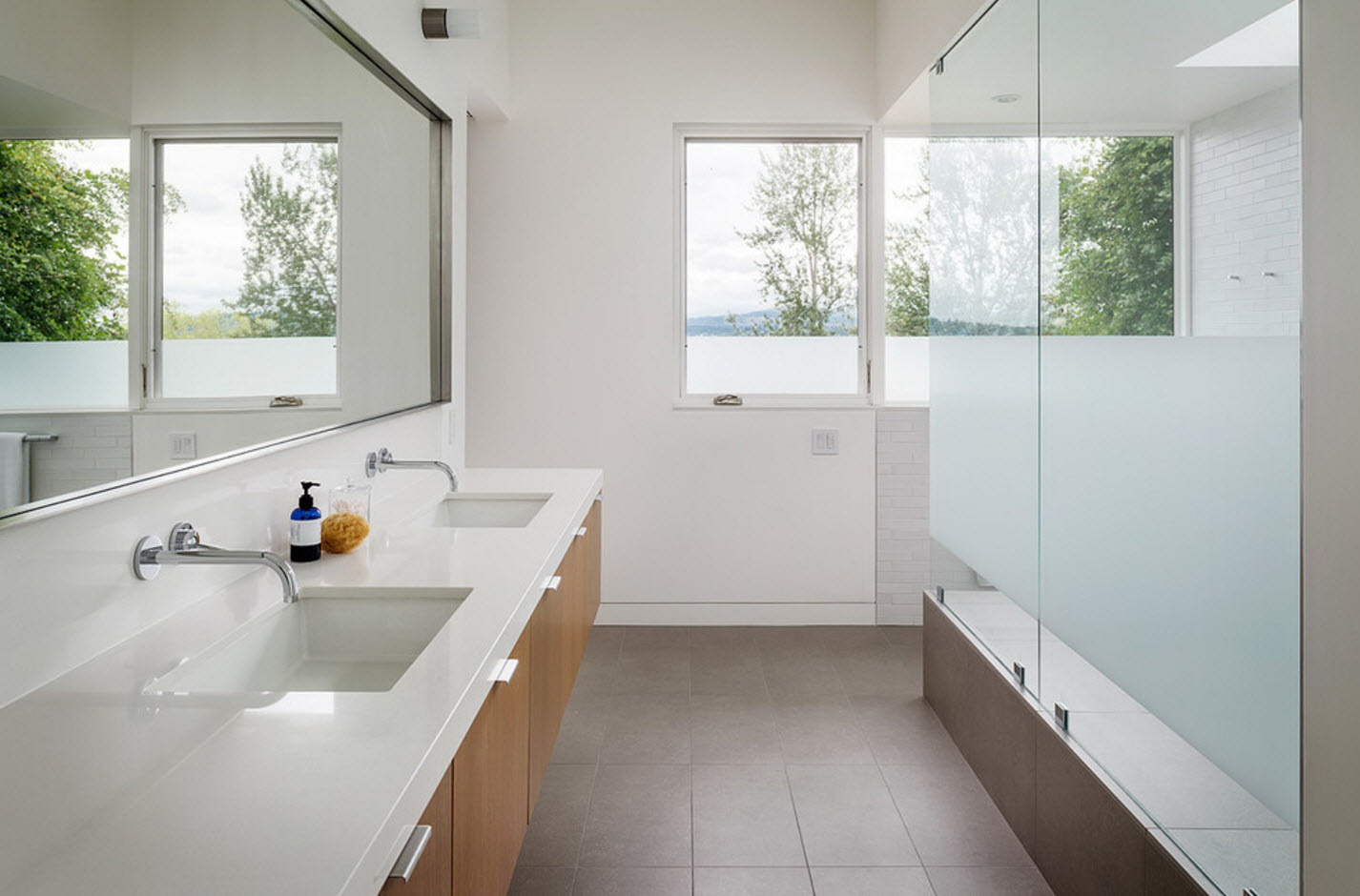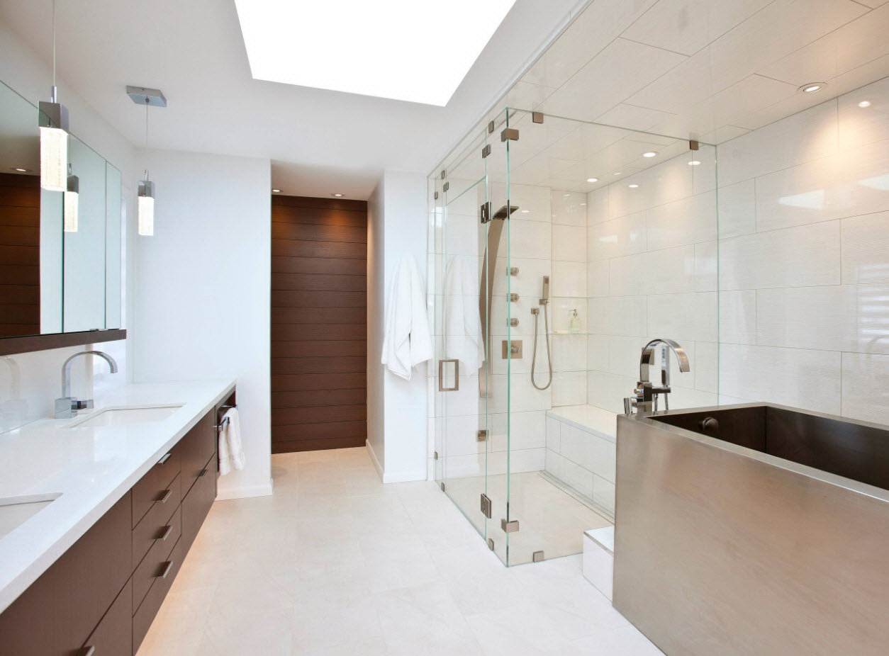 Além disso, as construções de PVC são higiênicas, não permitem calor, são confortáveis, isolam o ruído e combinam com qualquer telhas. Além disso, este material pode ser adequado para a fabricação de portas cabine de banho ou cortinas debaixo do banho. A textura e a tonalidade do plástico são selecionadas de acordo com o acabamento da sala.