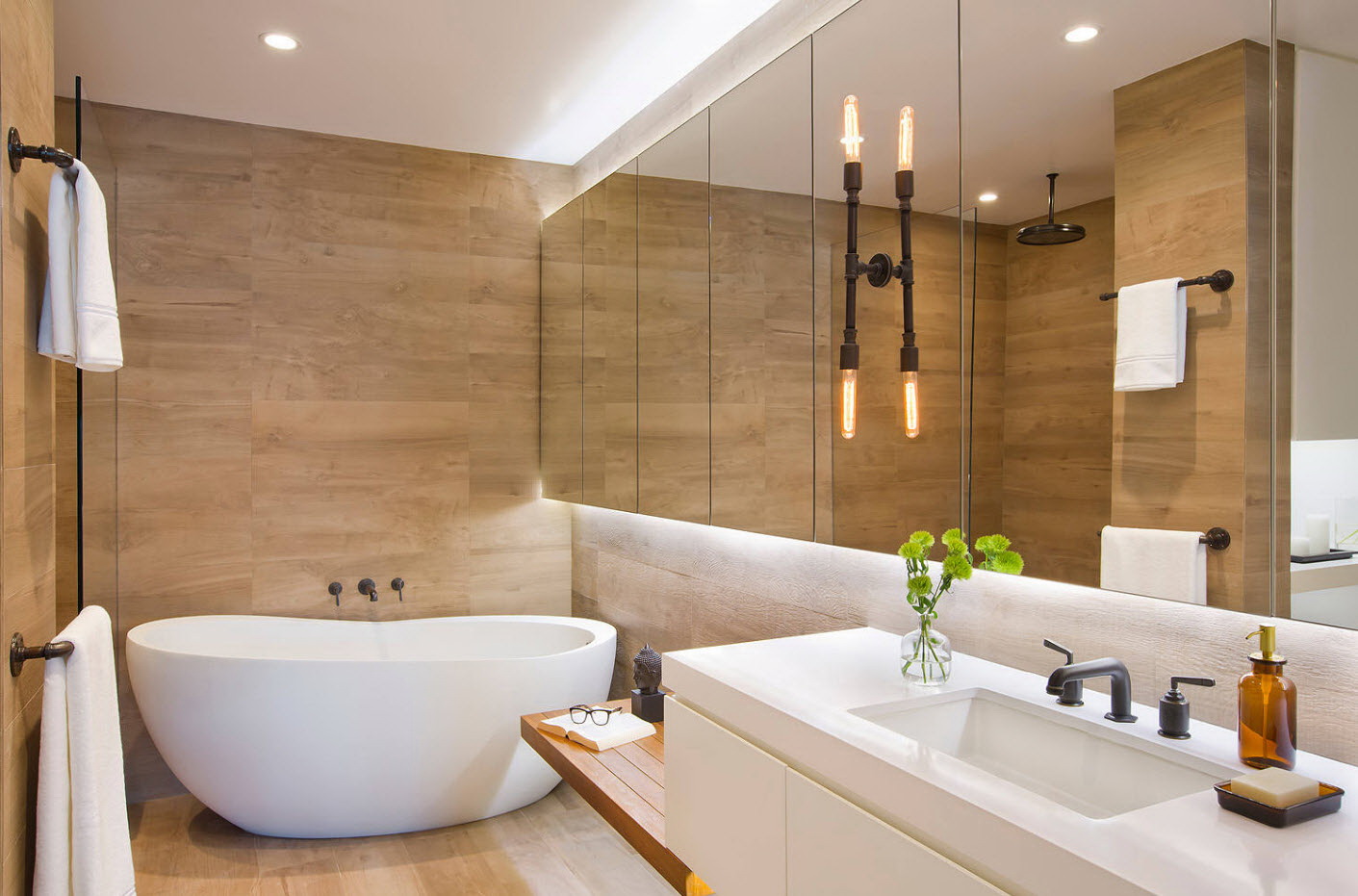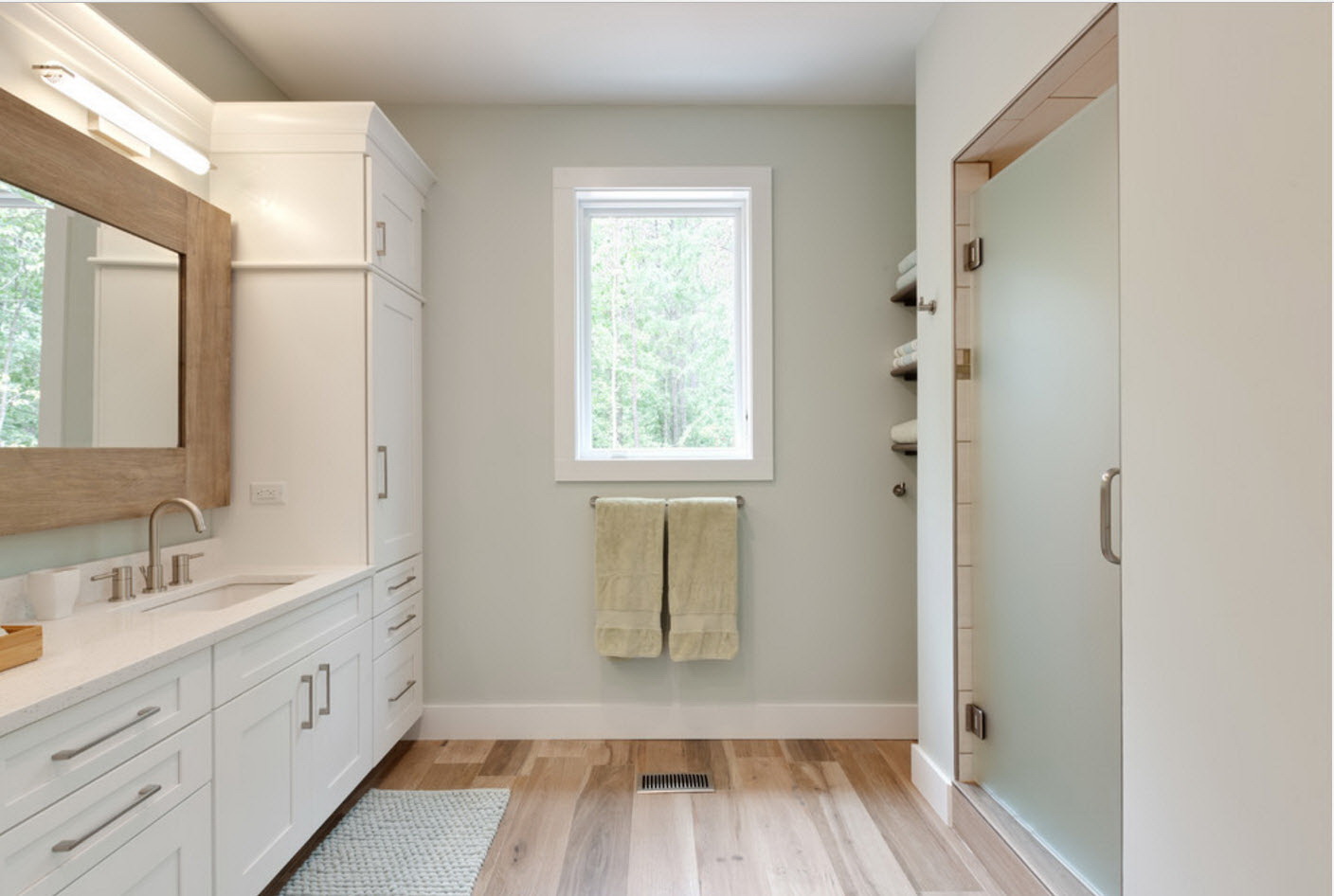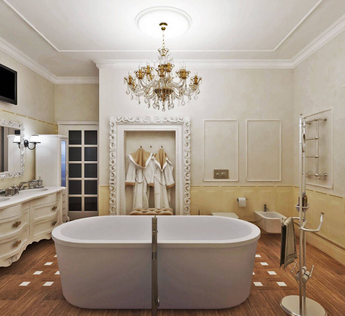 Você pode instalar produtos laminados resistentes à umidade que serão idealmente combinados com o design. Esta é a opção mais durável, prática e resistente ao desgaste. Piso laminado É um material sintético cuja estrutura é semelhante ao verniz natural. Tem um acabamento exterior sob madeira natural, conferindo à estética da lona e luxo.