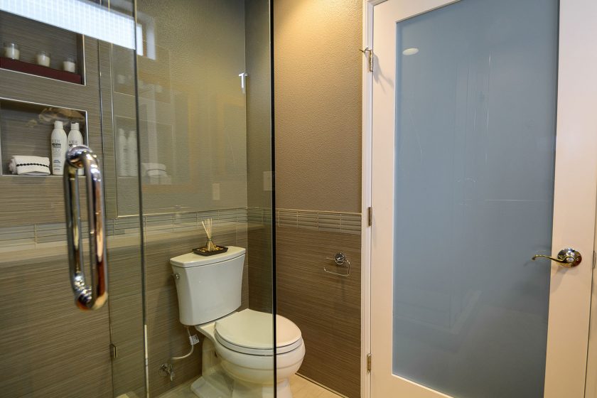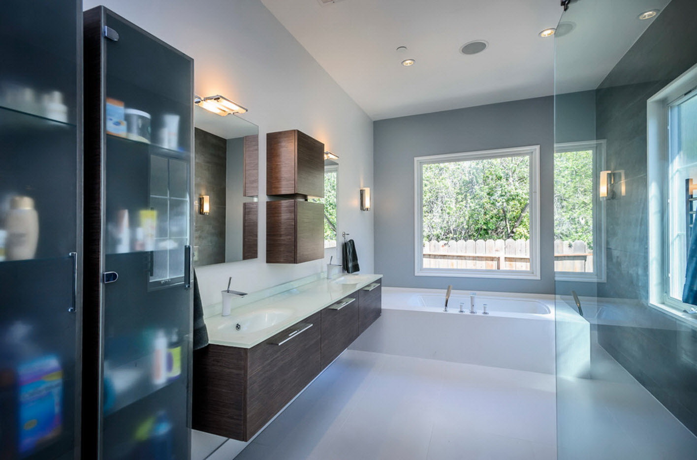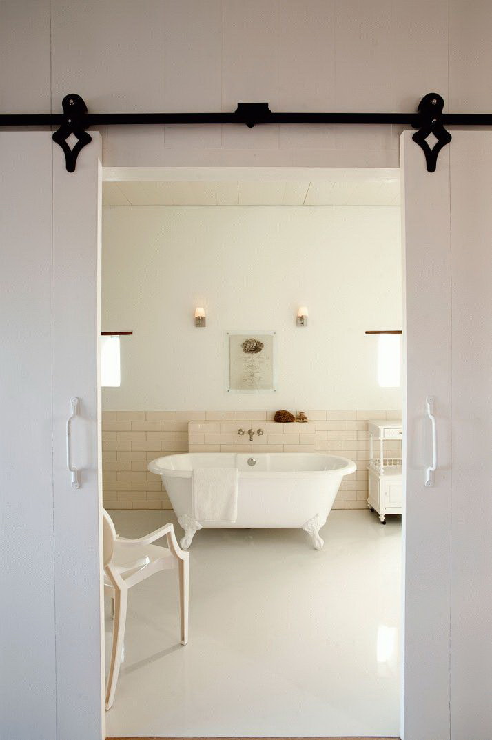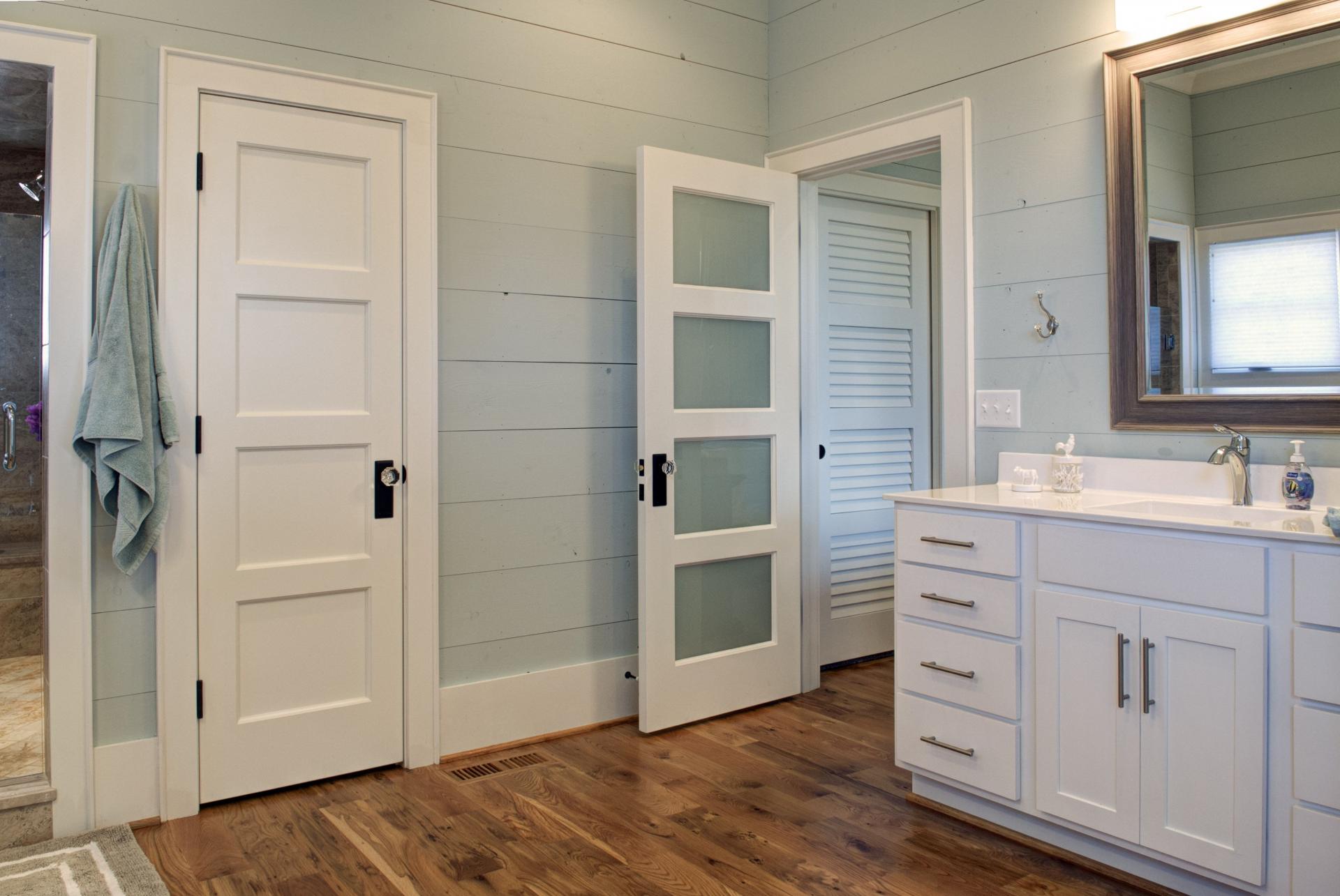 Devido ao fato de que na casa de banho e WC, o nível de umidade é alto, você deve escolher o design de materiais resistentes à umidade. A porta deve ser prática, resistente aos efeitos negativos da umidade. Materiais mais adequados são de vidro, plástico, madeira, MDF e aglomerado.