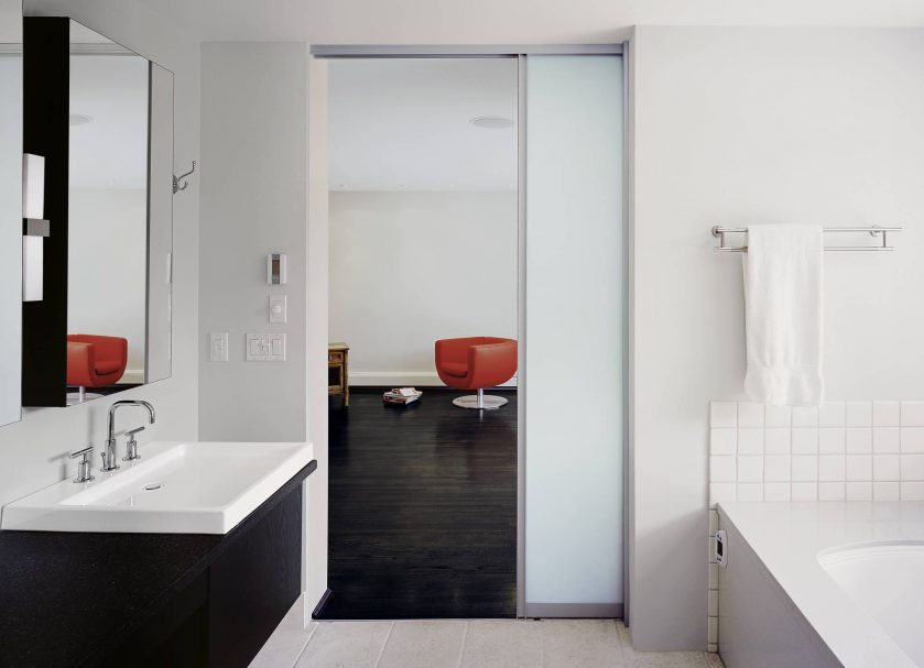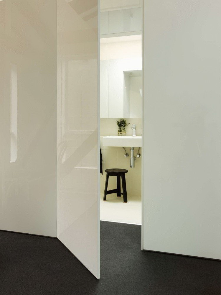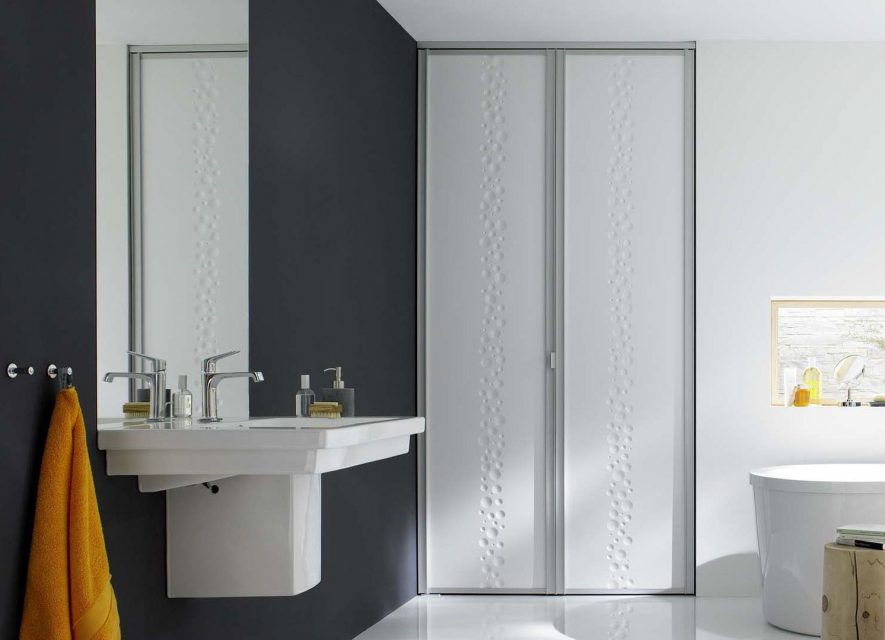 Também para o banheiro podem ser utilizados sistemas dobráveis na forma de um acordeão, cujo funcionamento não requer muito espaço.
