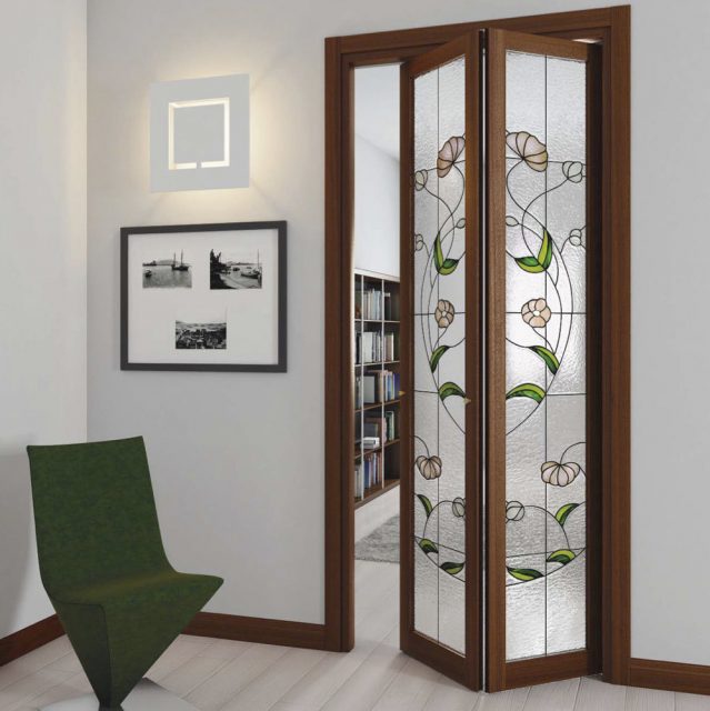 Vistas deslizantes vai olhar elegante, economizar espaço o corredor, mas para a sua instalação requer uma parede livre perto da abertura. Outra desvantagem dessas portas é o baixo isolamento acústico e a confiabilidade. A abertura e o fechamento são realizados por um par de portas de metal-plástico. É melhor instalá-los se houver espaço livre em ambos os lados da abertura.