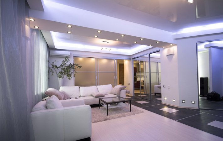 - Fácil instalação de lâmpadas. Drywall é fácil de perfurar, fácil de colocar em qualquer forma. Incorporar no processo luminárias é fácil.