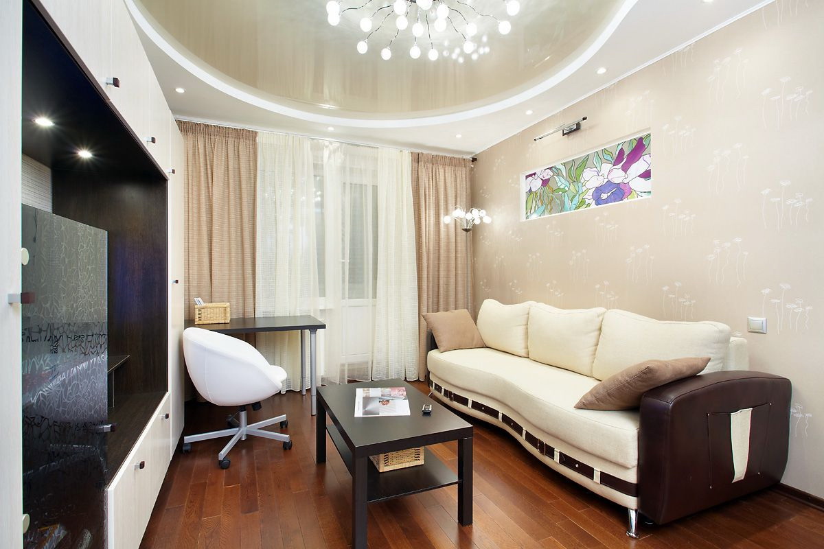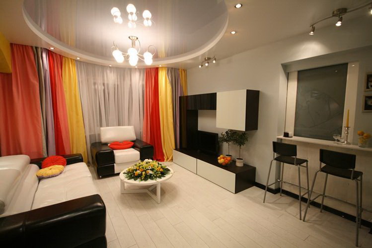 O teto na sala (310 + Foto): alta qualidade e moda. Apenas opções ganha-ganha