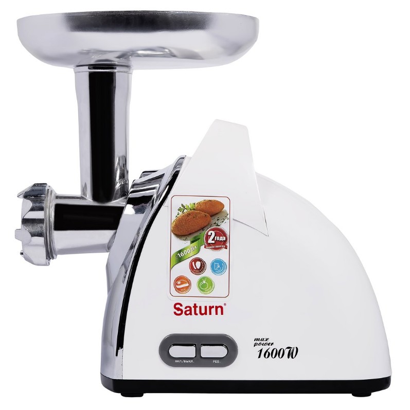 Funciona da potência até 330 watts. Em um minuto, o moedor de carne é capaz de processar 1,6 kg de carne. Os principais materiais utilizados são metal e plástico. É fornecido com um compartimento onde é conveniente armazenar bicos.