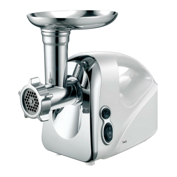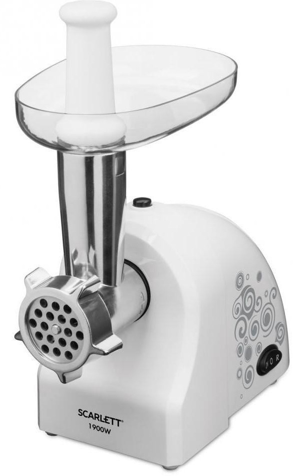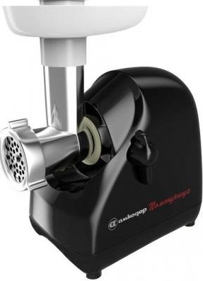 O moedor de carne representa a categoria de preço mais baixo. A potência de pico é de até 1500 watts. A carne se transforma em recheio de qualidade, independentemente da veia. É feito de uma base de aço. O dispositivo pode ser usado para moer pequenos produtos de diferentes durezas, fazendo salsichas em casa.