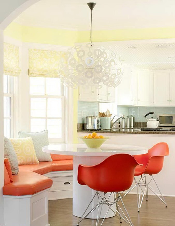 Tudo, desde cobrir e travesseiros antes de iluminação sobre a janela, você pode facilmente mudar com a chegada da nova temporada e tendências, para tornar a cozinha uma decoração fresca. Essa ideia de redecorar a cozinha é econômica e conveniente, e certamente uma das mais fáceis de implementar.